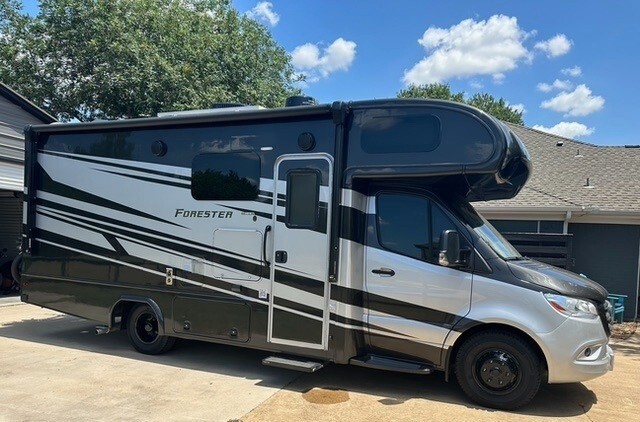 2023 Forest River Forester 2401B MBS Class C Diesel For Sale in Copper Canyon, TX 75077 This Forester is powered by a 3.0L V6 diesel engine and a 7-speed automatic transmission. The overall length is 25.42 feet and it comes equipped with 1 power retractable slide-out, 1 power retractable awning, 1 A/C unit, and room to sleep up to 6. This unit has been well-maintained. Kitchen/Living Area Features 2-Burner Stovetop Overhead Fan Microwave Full-Size Fridge/Freezer Sink & Faucet U-Shaped Dinette Storage Space TV