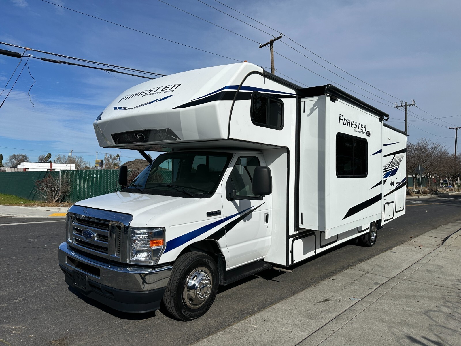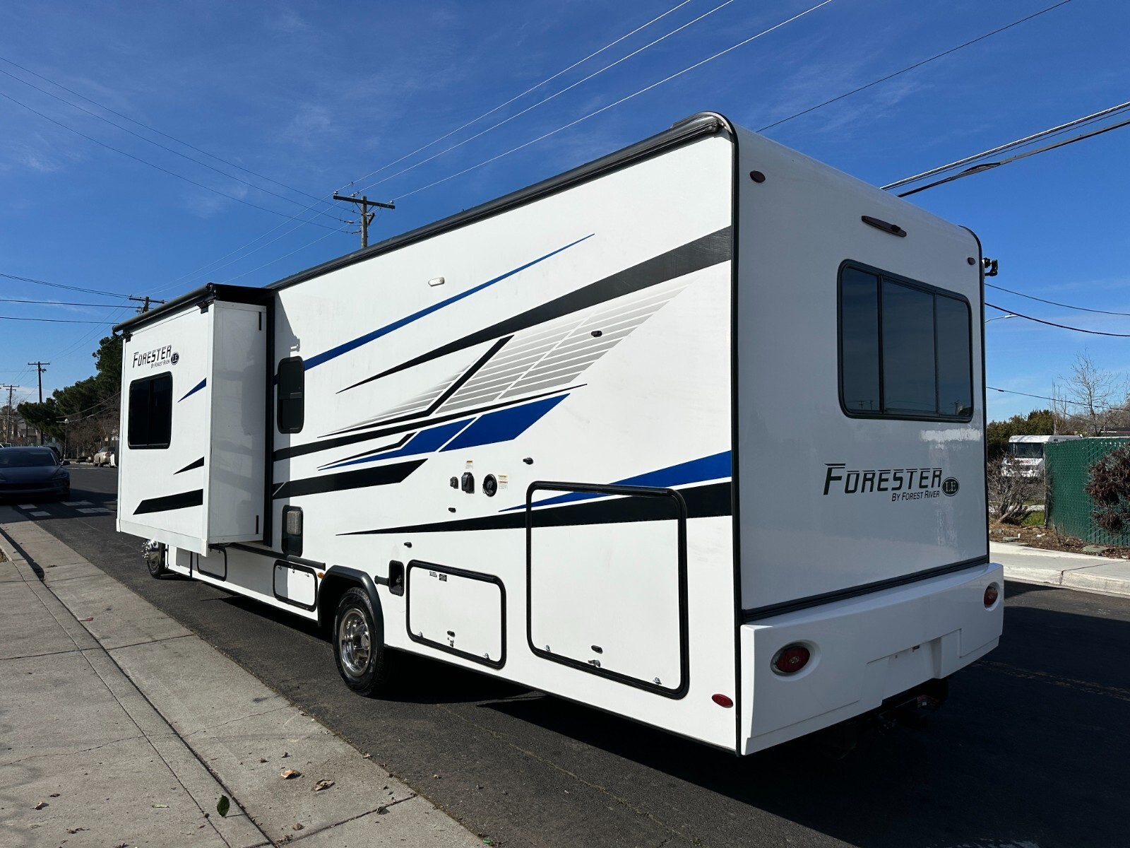 For sale is a 2023 Forest River Forester LE 3251DSLE on aFord E4500 Chassis, with 7.3L V8 Gas engine, paired with 6-speed automatic transmission,with rear wheel drive drivetrain andTowing capacity of 7,500 lbs. Comes withcruise control, power windows, smart stereo with car play and side/rear camera system.The RV has 76,766 miles, measures 32feet 3 inches in length, features electric awning with LED lighting, Exterior speakers, Solar, 44 gallon fresh water tank, 39 gallon grey water tank, 39 gallon black water tank and 55 gallon gas tanks, with a GVWR of 14,500 lbs and 12,161 lbs dry weight. This RV comes withbuilt in Onan 4KW gas Generator with 852 hours,four point hydraulic self leveling jacks, all new tires, lithium batteries, Gas Stove, Microwave stainless Sink and much more.Please see over 220 pictures below.