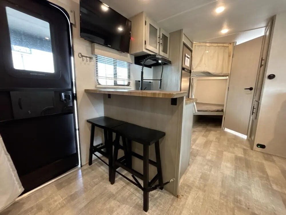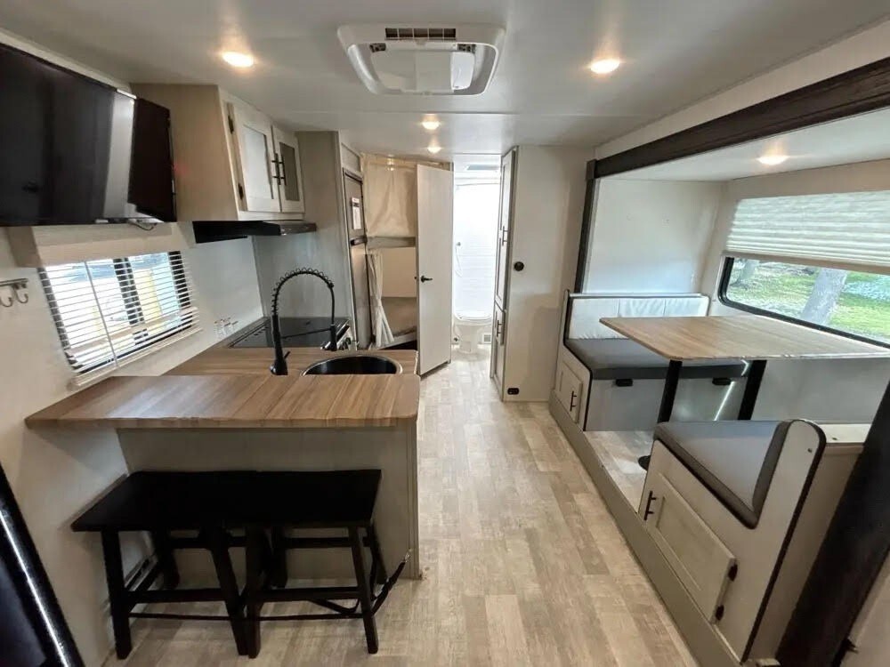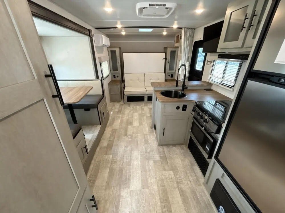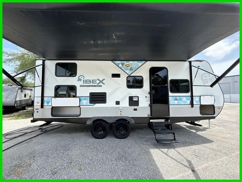 2023 Forest River Ibex 23BHEO Travel Trailer For Sale in Fairhope, AL 36532 This Ibex has an overall length of 26.17 feet and comes equipped with 1 power retractable slide-out, 1 power retractable awning, double oversized bunks, and plenty of room to sleep 8. This unit has been well-maintained. Kitchen Features 3-Burner Stove/Oven Overhead Fan Microwave Mid-Size Fridge/Freezer Sink & Faucet Dinette Booth Pantry Storage Space Living Room Features