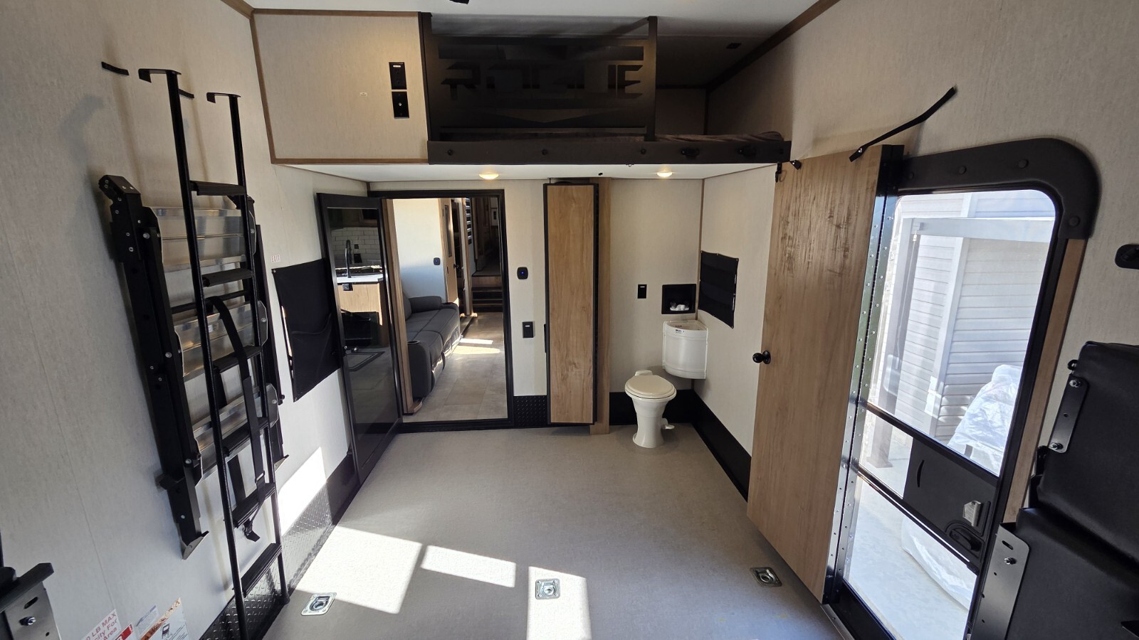 This is a 2023 Forest River Vengeance Rogue Armored 4007G2 Bunkhouse Toy Hauler Fifth Wheel. It features 6 point hydraulic auto leveling, fuel station, 5500 watt generator, 3 slide outs, 2 air conditioners, sleeping for 7 comfortably, premium fiberglass laminated aluminum framed sidewall construction, tasteful graphics, large pass through storage compartment, outdoor refrigerator and fully enclosed & heated underbelly.