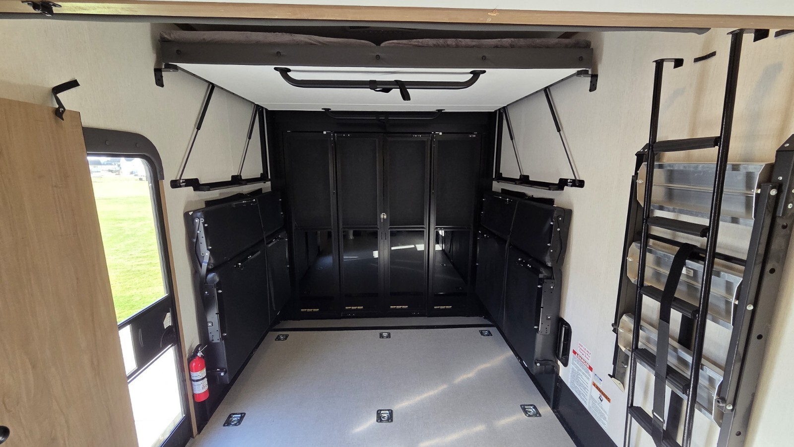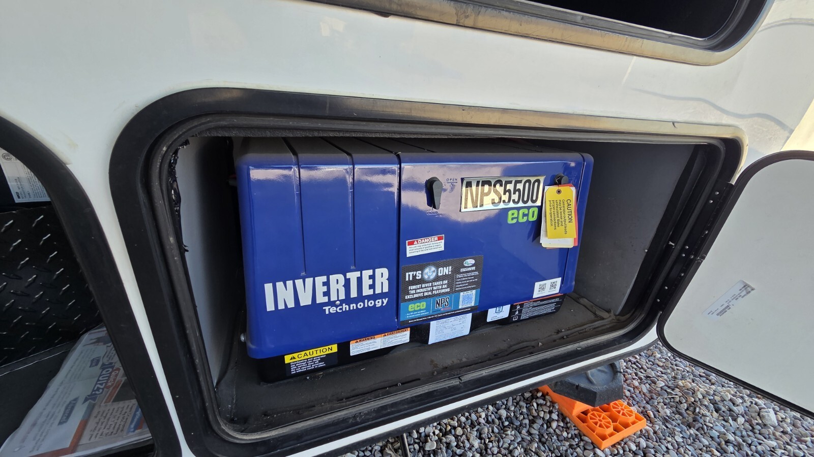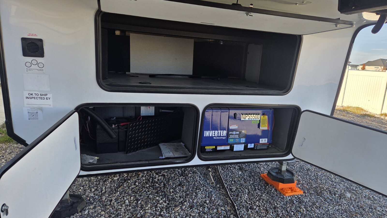 Comes with 2 lithium Batteries that are maintained by 200 Watt Solar on Roof. I have another trailer on order that is not a toy hauler. This is why ibam selling this trailer. It it a great teailet just no need for toy hauler anymore.