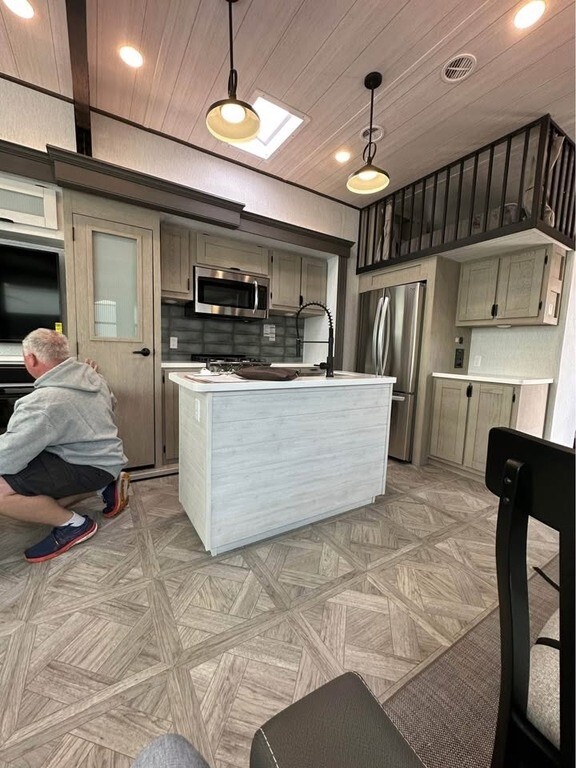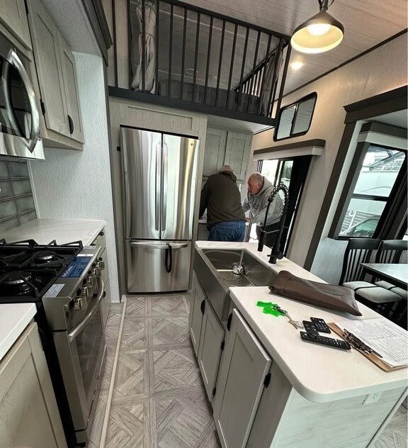 2024 Forest River Wildwood Grand Lodge 42DL Destination Trailer For Sale in Mason City, IA 50401 This Forest River has an overall length of 42 feet and comes equipped with 3 power-retractable slide-outs, a 20-foot power awning, 2 A/C units, a fireplace, a loft, and plenty of room to sleep 7. This unit has been well-maintained. Kitchen/Living Area Features 4-Burner Insignia Stove/Oven Microwave Oven Residential Fridge/Freezer Sink & Faucet on Island Walk-In Pantry Table & Chairs TV Electric Fireplace