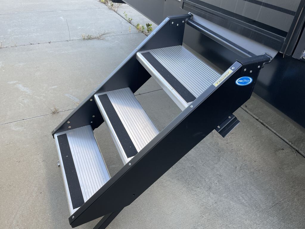 Inside, the 294GEBG can sleep up to nine people. The front private bedroom includes a spacious RV king bed with surrounding wardrobes, offering a restful retreat. At the rear, there's a full queen loft bed and a private bunk area, ensuring privacy and comfort for all occupants.