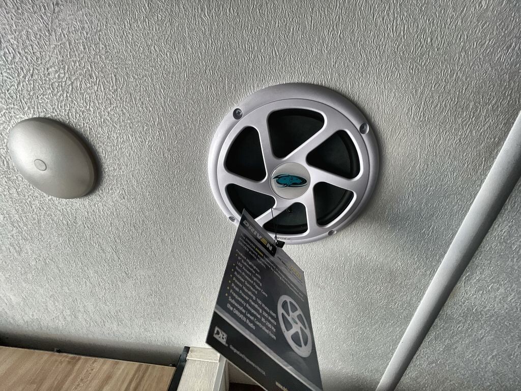 The exterior of the 14CCWBL features premium fiberglass siding and frameless windows, enhancing both aesthetics and durability. The 10-foot power awning with LED lighting extends your living space outdoors, providing a perfect spot to relax and enjoy the scenery.
