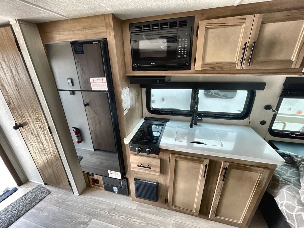 The 2025 Forest River Cherokee Wolf Pup Black Label 14CCWBL is a compact travel trailer designed for adventurers seeking comfort and convenience on the road. Measuring 19 feet 3 inches in length and weighing approximately 3,594 pounds, this lightweight trailer is easily towable by most SUVs and light trucks, making it an excellent choice for both seasoned travelers and newcomers to the RV lifestyle.