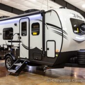 The Forest River Flagstaff E-Pro E20FK is a compact travel trailer designed for those who appreciate efficiency and style. Its lightweight build makes it easy to tow, ideal for couples or small families seeking adventure without compromising comfort.Constructed with an aluminum frame and laminated fiberglass sidewalls, the E20FK offers durability and ease of maintenance. Its aerodynamic design enhances fuel efficiency, and the 15-foot power awning extends your living space outdoors, providing ample shade and shelter. Equipped with a 200W roof solar panel and an 1800W inverter, this RV supports eco-friendly journeys and off-grid capabilities.Inside, the E20FK features a front kitchen equipped with modern appliances, including a three-burner cooktop, microwave, and a spacious 12V refrigerator. Ample counter space and storage solutions make meal preparation convenient. The living area includes a comfortable recliner and