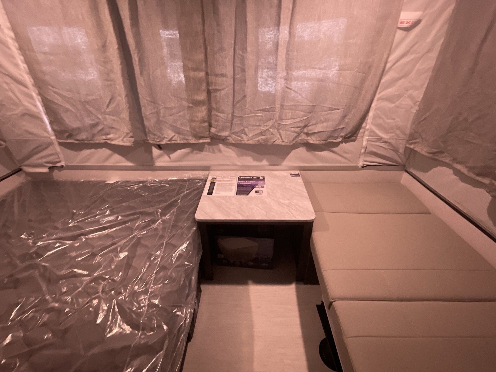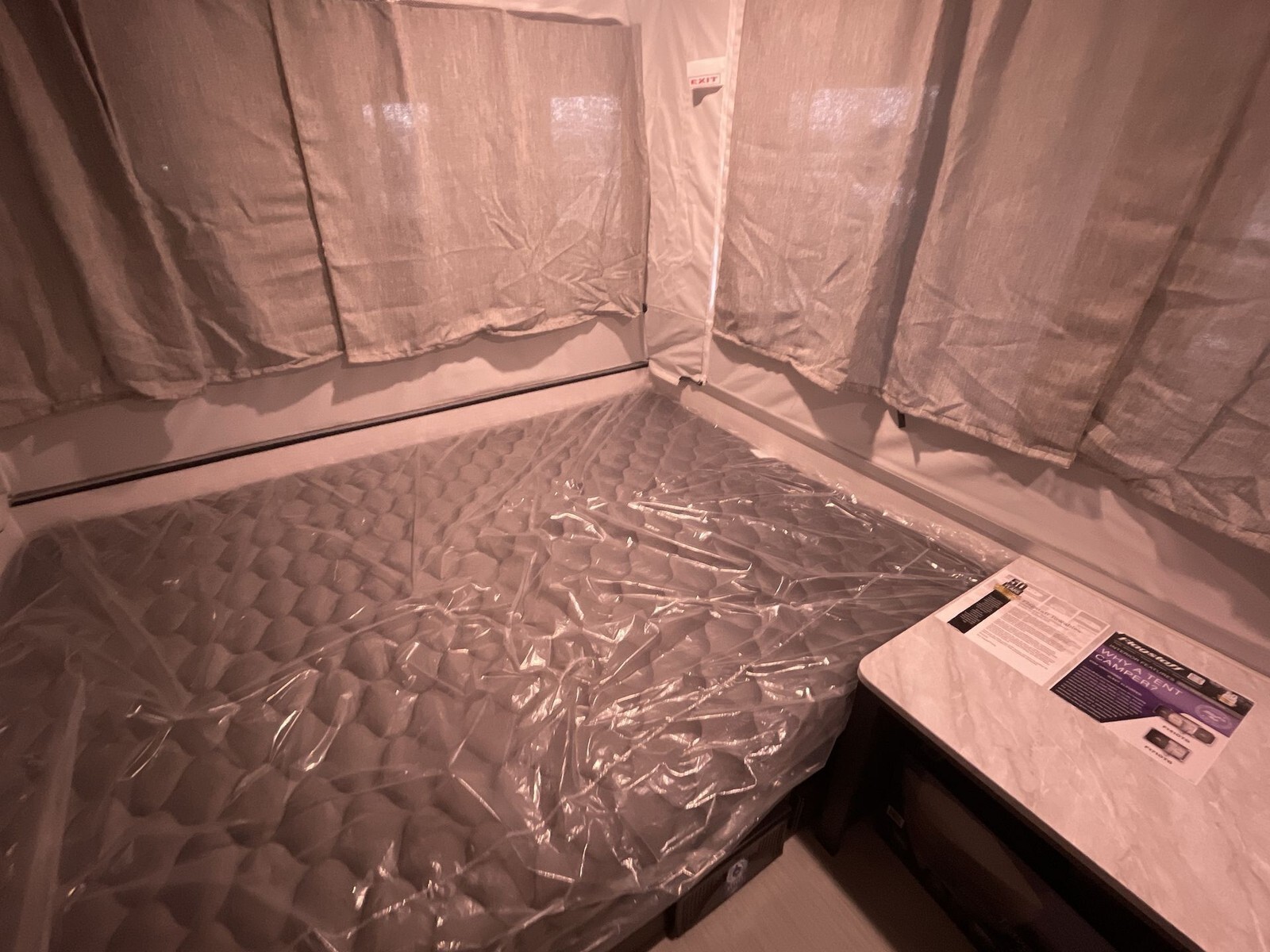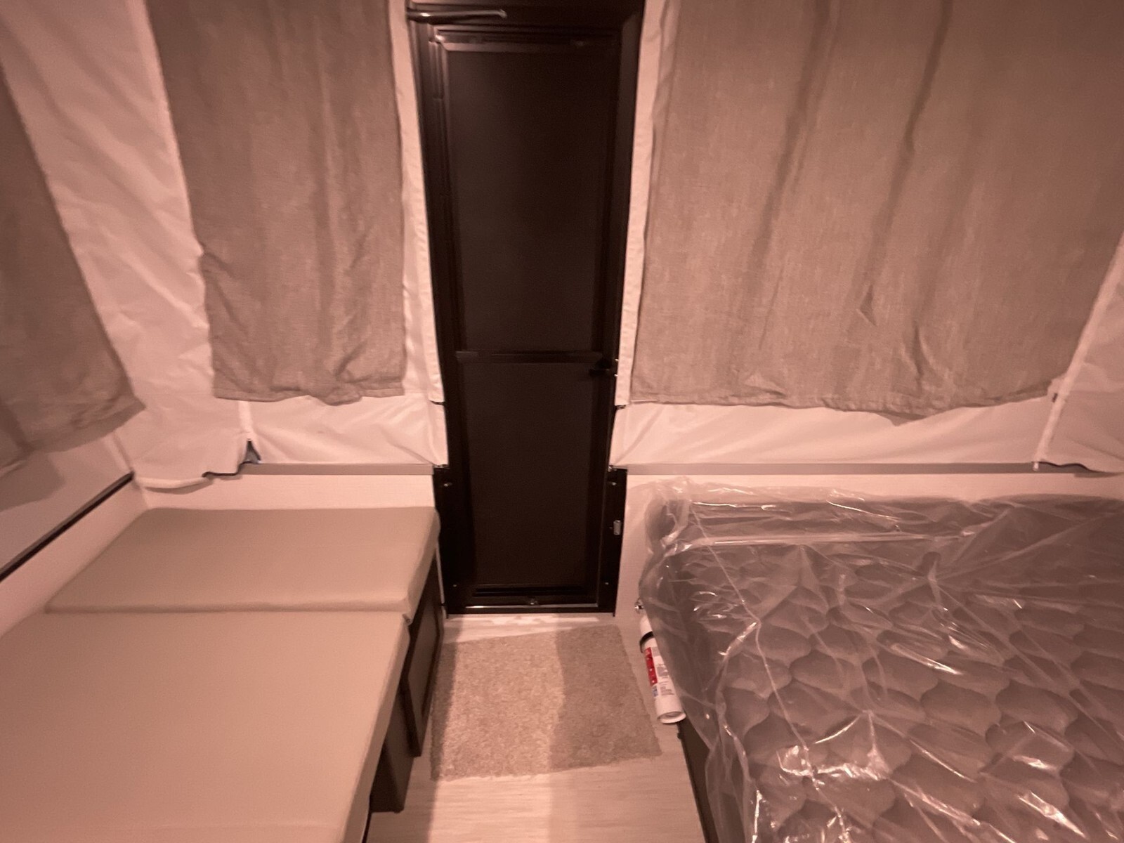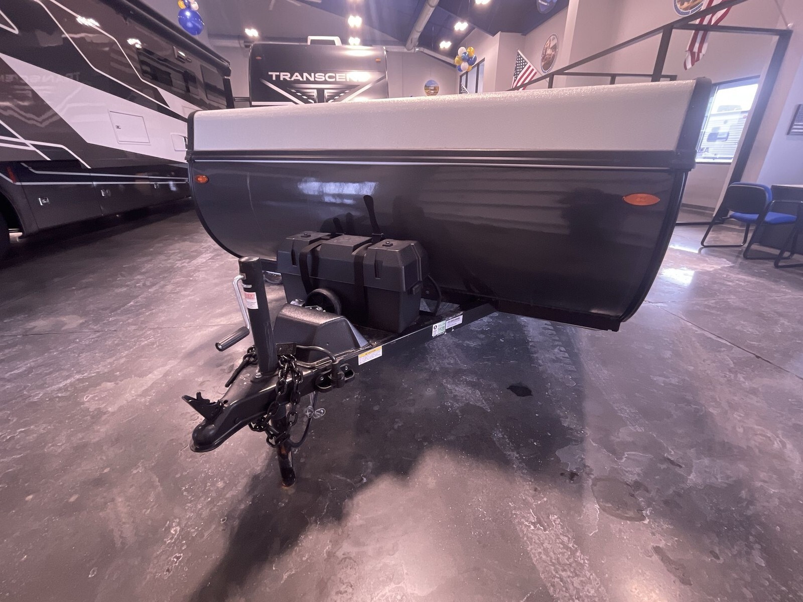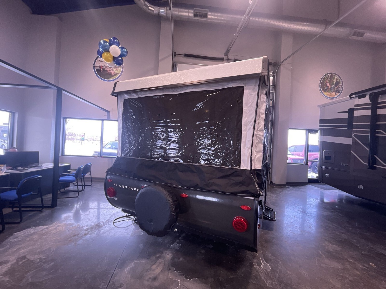 The Forest River Flagstaff Tent F171OTG is a versatile and user-friendly expandable camper, perfect for outdoor enthusiasts seeking comfort and convenience. Its compact and lightweight design ensures easy towing with most vehicles, making it ideal for both solo travelers and small families.Inside, the F171OTG features an Andover Sable wood interior, creating a warm and inviting atmosphere. The wood-look flooring adds a touch of elegance while being easy to maintain. Residential-style cabinet doors and wood drawers with full-extension metal guides provide ample storage for all your camping essentials. Privacy curtains offer a comfortable and secluded space for relaxation.The camper is equipped with practical features to enhance your camping experience. A roof vent promotes airflow, keeping the interior fresh. Interior LED lights brighten the space during evenings. The F171OTG includes a single entry step and a one-piece