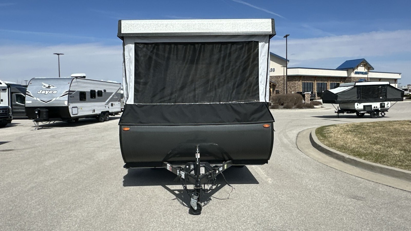 Introducing the 2025 Forest River Rockwood Tent 19OTG, a versatile and lightweight folding pop-up camper designed for outdoor enthusiasts seeking comfort and convenience. Built with a durable alloy fiberglass exterior and a sturdy steel frame, the 19OTG ensures longevity and ease of towing. Its compact design, measuring 13'10" in length and 4'10" in height when closed, makes it suitable for various camping adventures. Inside, the camper features an Andover Sable wood interior with wood-look flooring, creating a warm and inviting atmosphere. The residential-style cabinet doors and wood drawers with full-extension metal guides offer ample storage space for your essentials. Sleeping arrangements include a comfortable queen-size bed with a quilted top mattress and a convertible dinette area, accommodating up to three people. Privacy curtains provide added comfort and seclusion. The 19OTG is equipped with a roof vent for proper