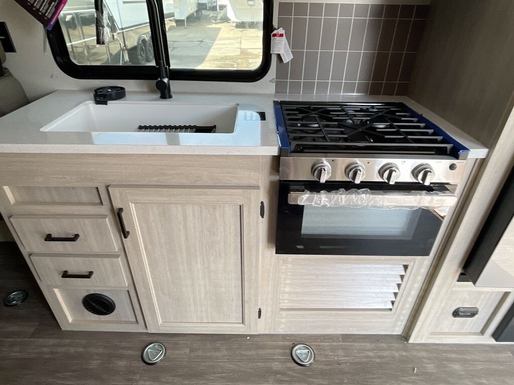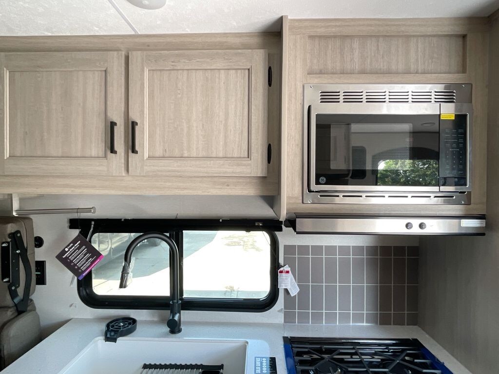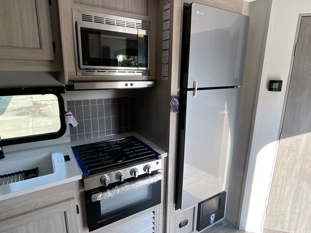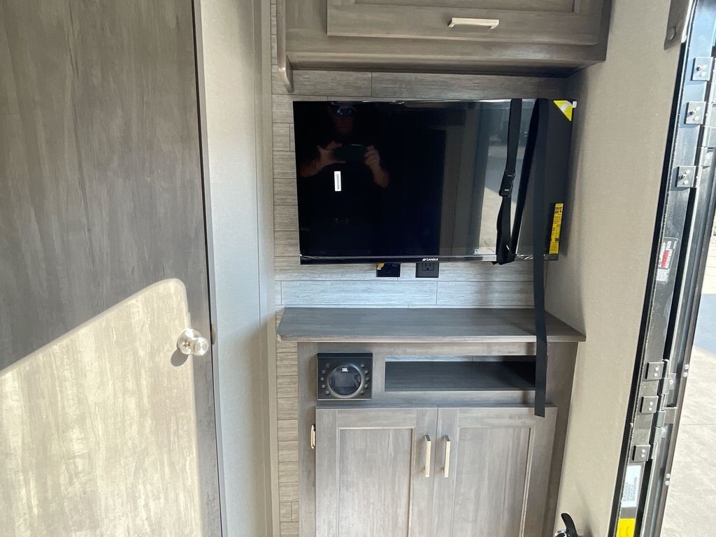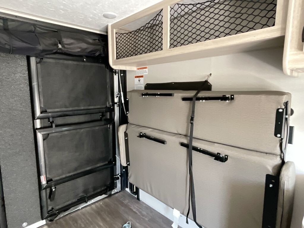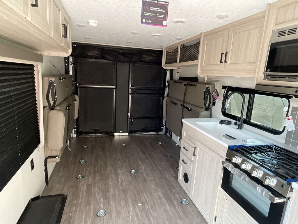 The Forest River Aurora 26ATH is a versatile toy hauler travel trailer designed to enhance your adventures with comfort and functionality. Measuring 30 feet in length and 8 feet in width, it offers ample space for both living and transporting your favorite outdoor gear.Built on a sturdy chassis, the Aurora 26ATH ensures stability and durability on the road. Its sleek, aerodynamic design not only improves fuel efficiency but also adds to its visual appeal. The exterior features a high-gloss gel coat fiberglass finish that maintains a modern look. A 15-foot power awning with LED lighting and outdoor speakers creates an inviting outdoor space for relaxation and entertainment.Inside, the Aurora 26ATH boasts a spacious, open floor plan that maximizes living space. The living area includes two fold-down sofas that provide comfortable seating and can convert into additional sleeping areas. The kitchen is well-equipped with a