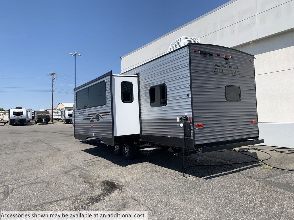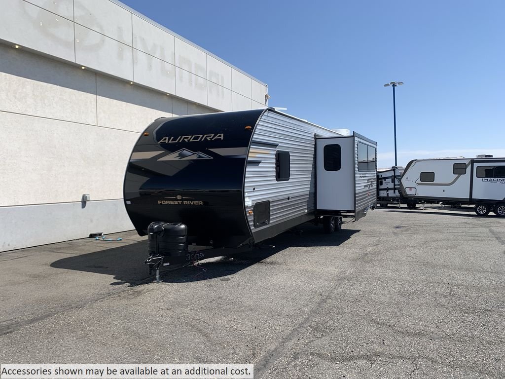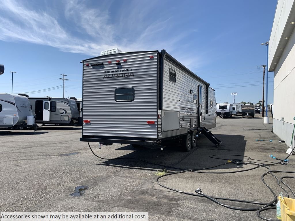 Forest River Aurora travel trailer 29TQS highlights:BunkhouseFront Private BedroomCamper KitchenExterior StorageOutside Shower