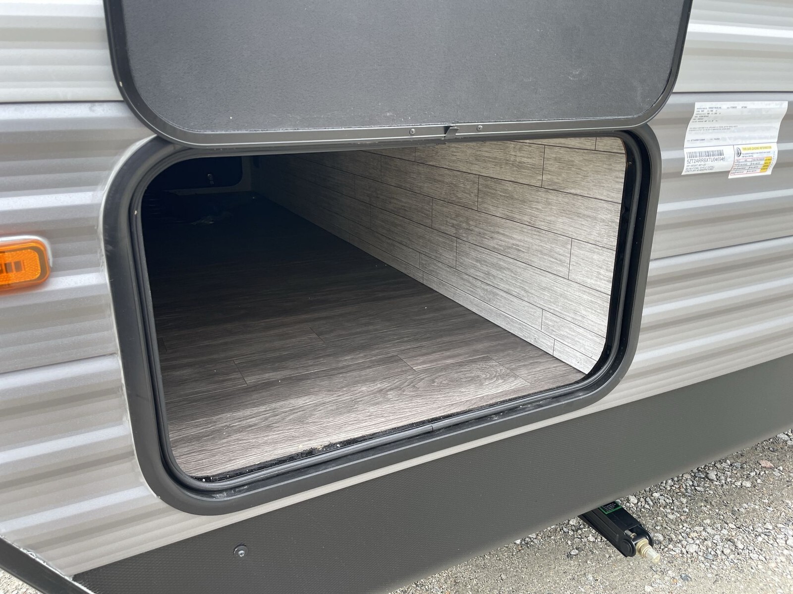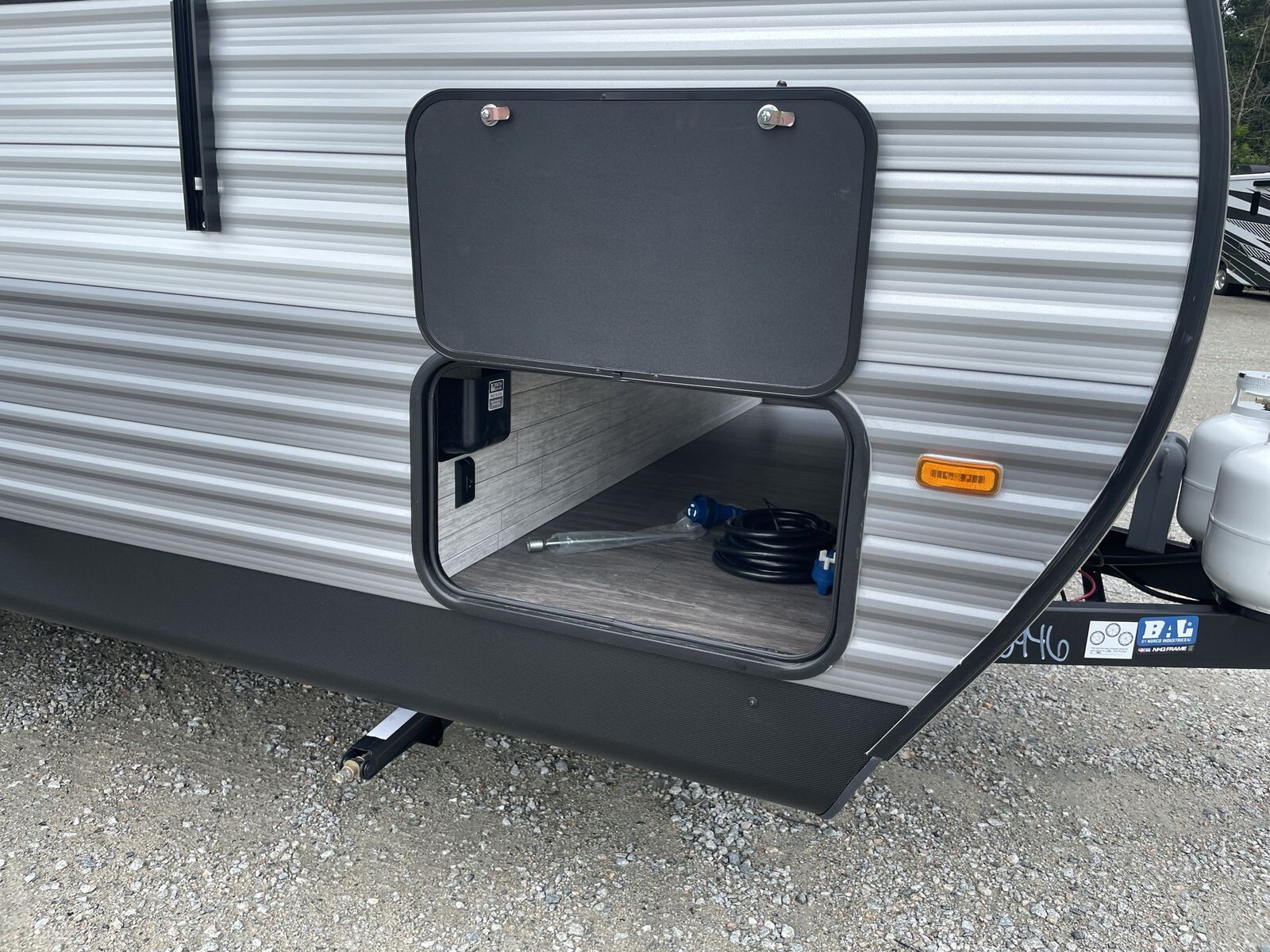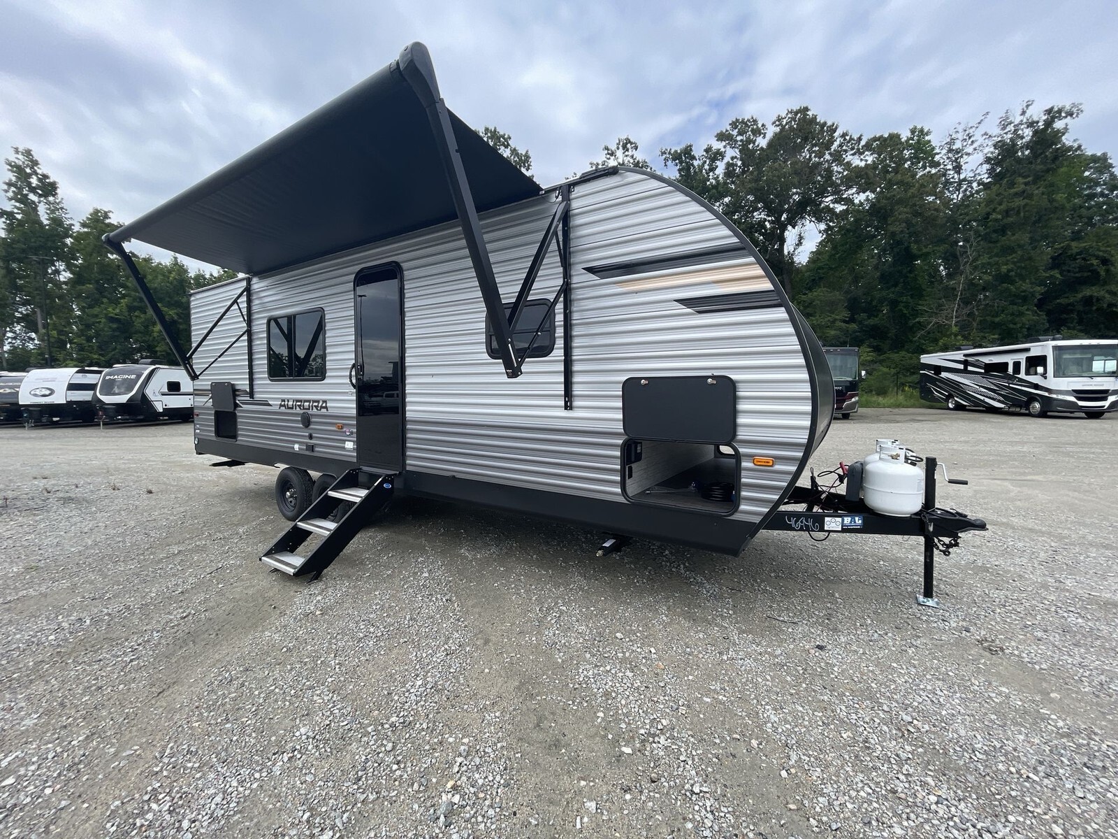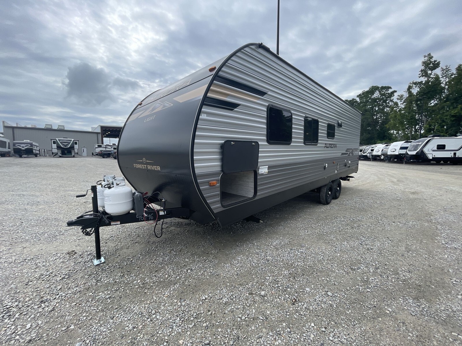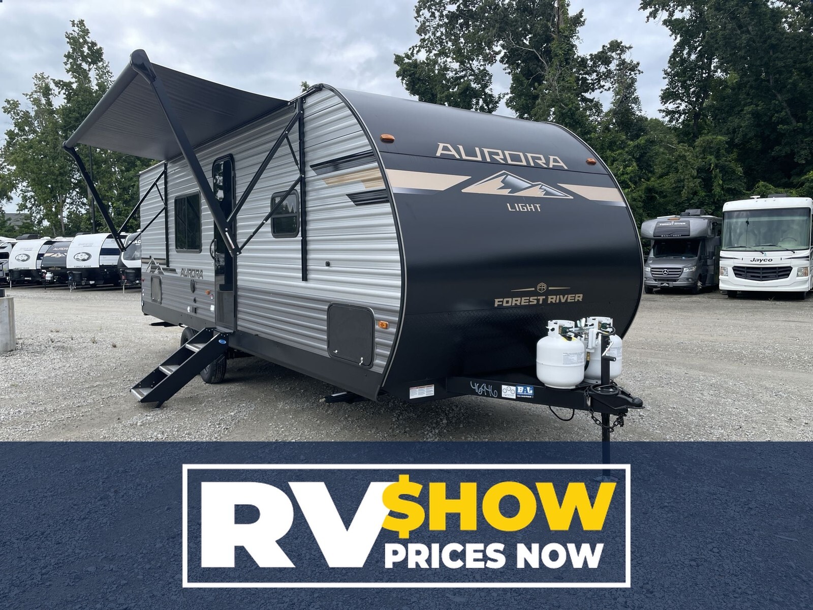 The Forest River Aurora Light 26BH is a travel trailer designed for families and adventure seekers, offering a comfortable and practical option for road trips and camping excursions. Measuring 29.25 feet in length and 8 feet in width, this model is easy to tow while providing ample space for up to 10 occupants.Inside, the 26BH features a thoughtfully designed floor plan that includes double-sized bunk beds at the rear, perfect for children or guests. The front semi-private bedroom offers a cozy queen-size bed with storage underneath, providing a restful retreat after a day of adventure. The main living area includes a sofa with armrests and cupholders that can be converted into a sleeping area, and a booth dinette that also converts into a bed, accommodating larger groups comfortably.The kitchen is well-equipped with a three-burner cooktop, microwave oven, and a 12V 10.7 cu. ft. refrigerator, making meal preparation convenient