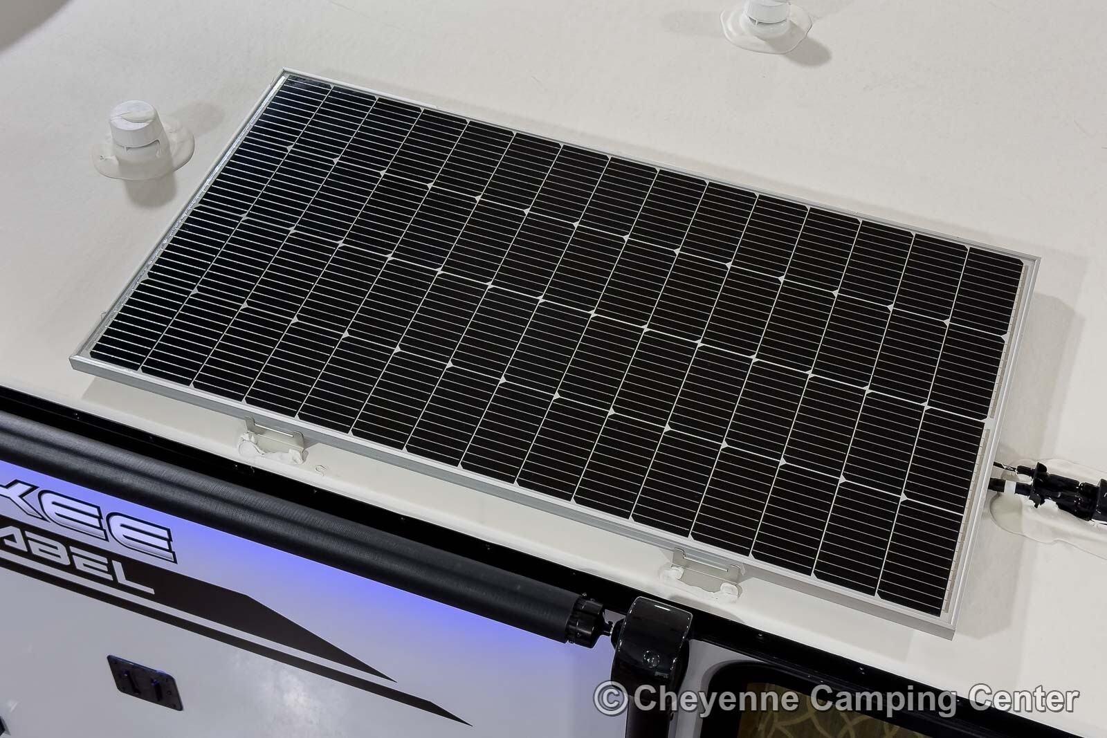 Stay entertained with the Bluetooth media receiver with exterior speakers, perfect for setting the mood during your getaways. Additional features include a 200-watt solar panel, an 1800-watt bedside power inverter, premium self-storing MORryde entry steps, a backup camera, power stabilizer jacks, and a power awning for effortless outdoor relaxation.