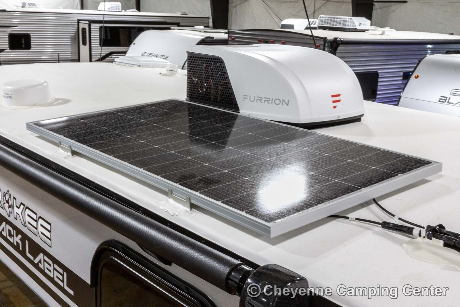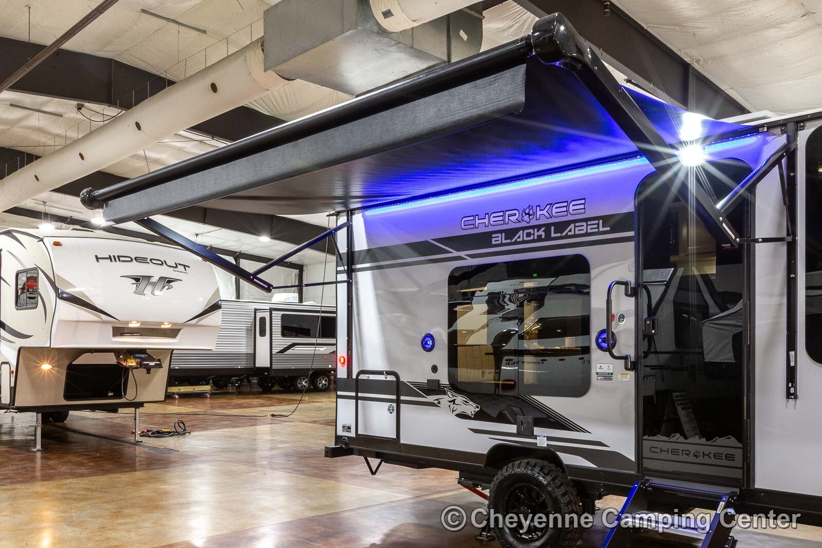 The Black Label Edition features premium fiberglass siding and frameless windows for a sleek look, while the Thermo Foil insulation keeps you cozy. The hands-free magnetic baggage door catch offers yet another level of convenience. Inside, enjoy solid-surface countertops, a beautifully upgraded shower fixture, designer cushion fabric, and upgraded reading lights to enhance your camping experience.