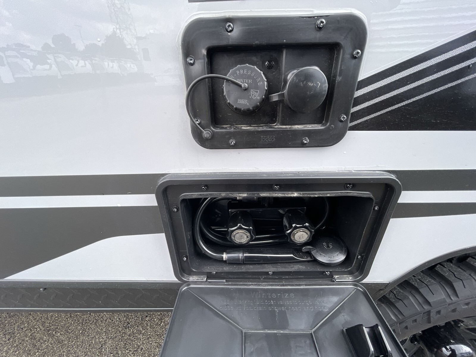 The Black Label package enhances the exterior with premium fiberglass siding and frameless windows, offering a sleek and modern look. Thermo-Foil Arctic Insulation ensures comfort in various climates, while the aerodynamic design contributes to fuel efficiency.