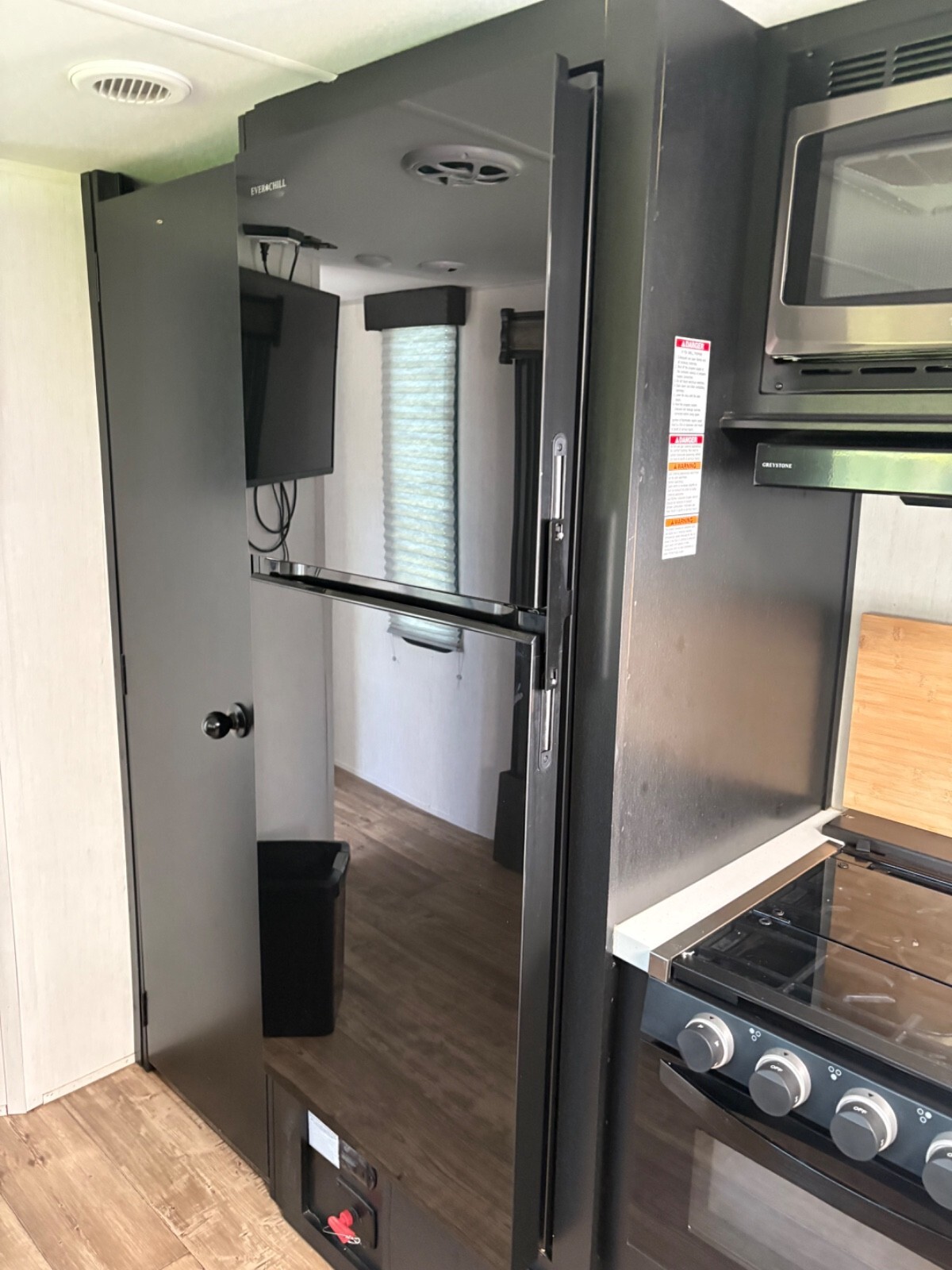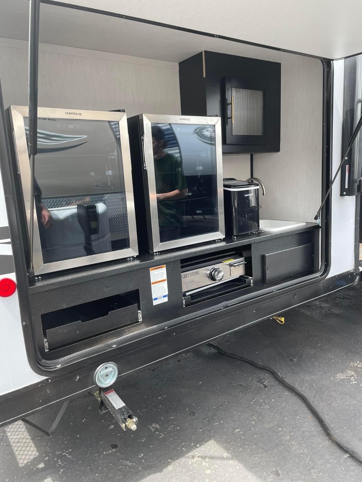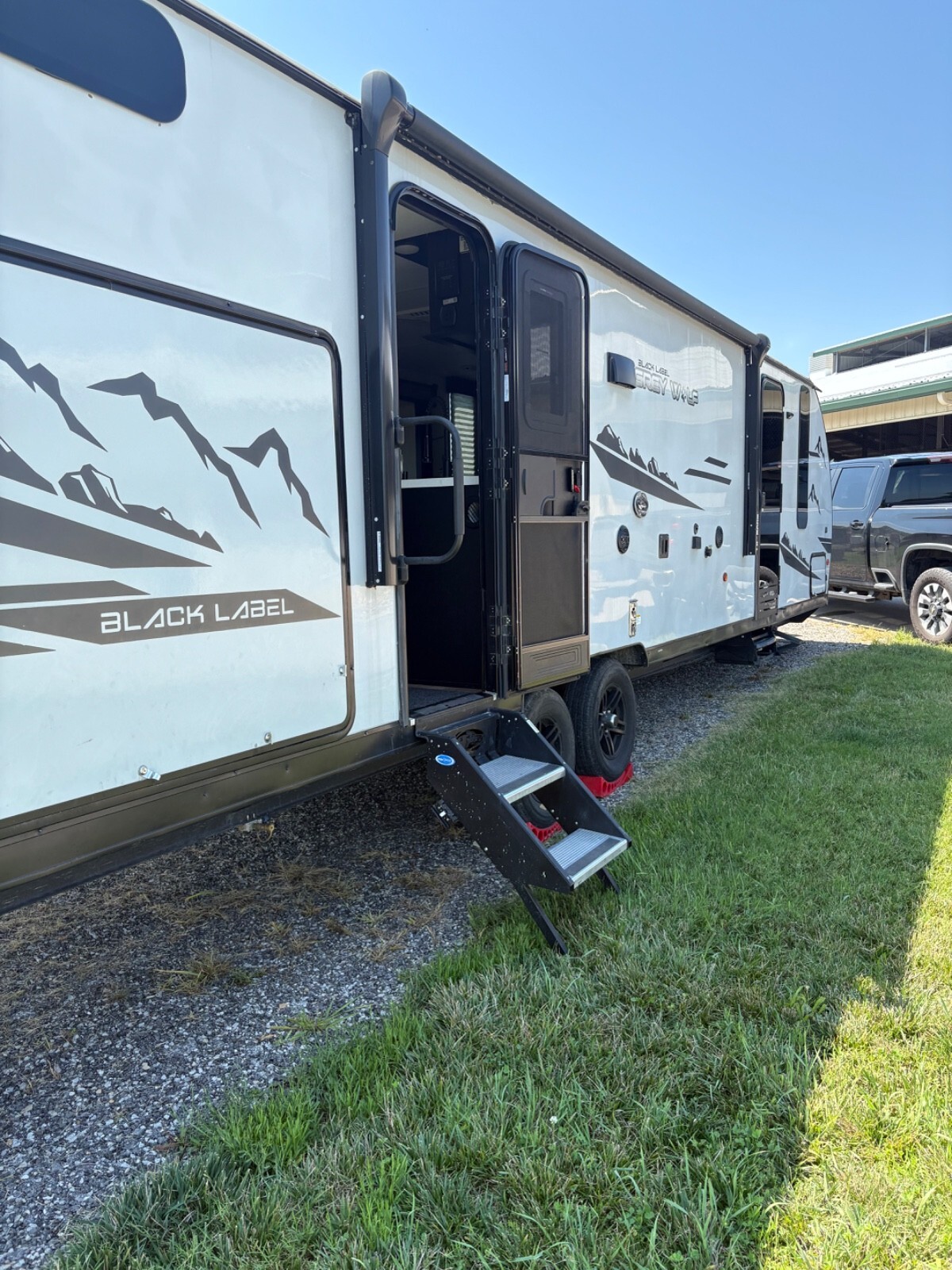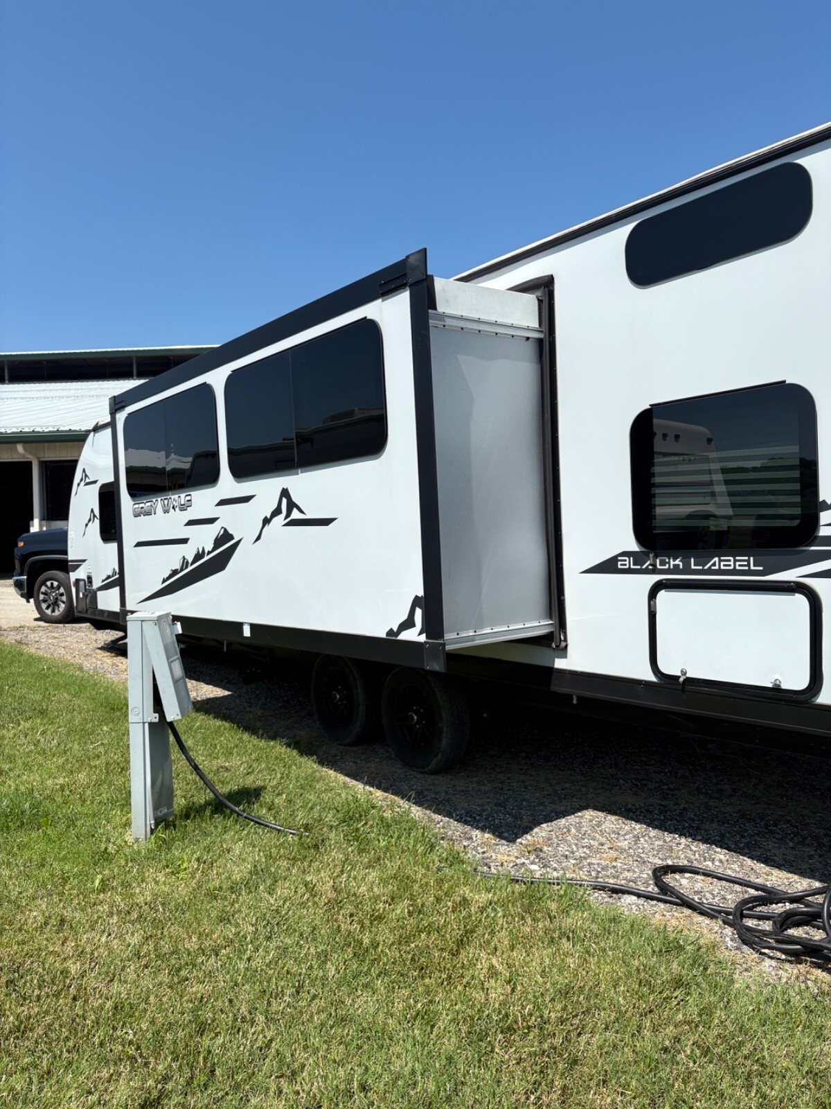 This camper is 36ft. I added a black stone grille to the outside kitchen. Added a TV to the living room area. Very nice shape and ready to go. New tires. Will include sway bar hitch.