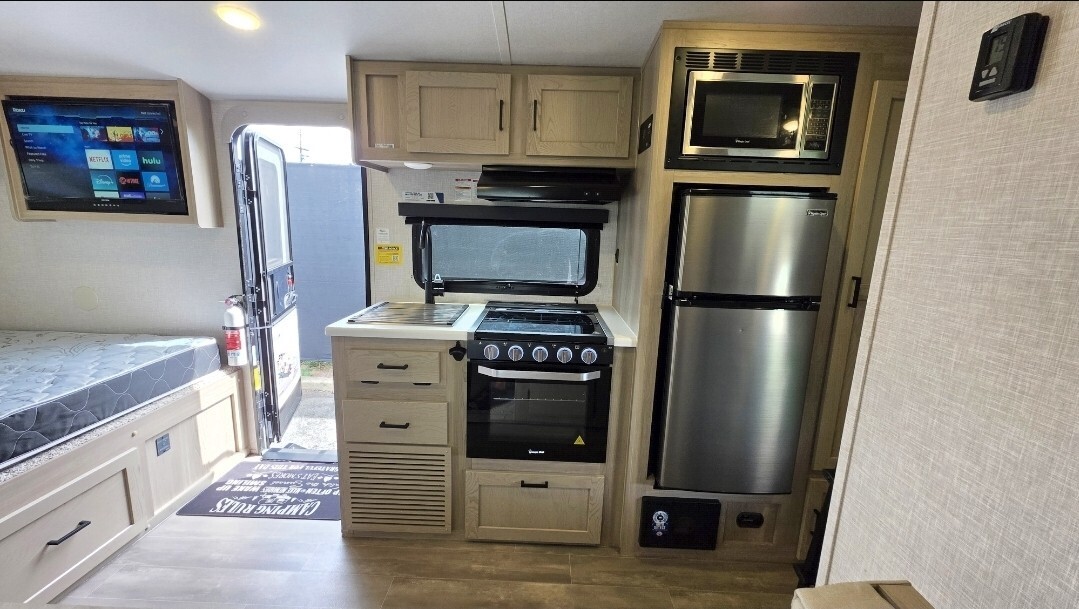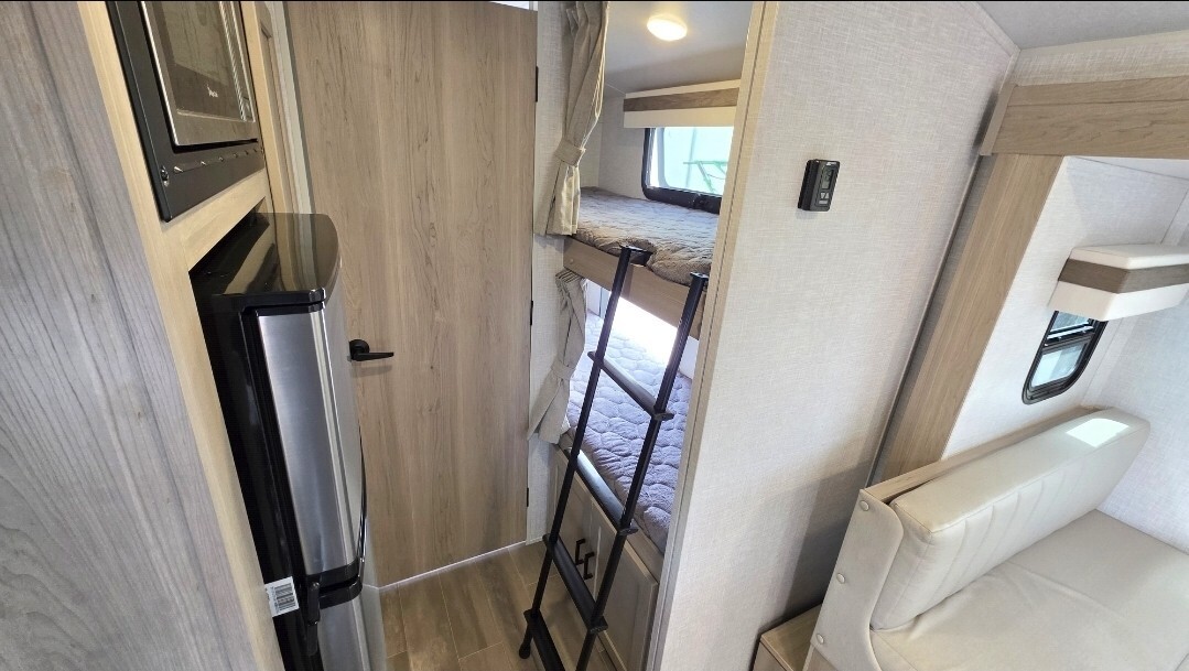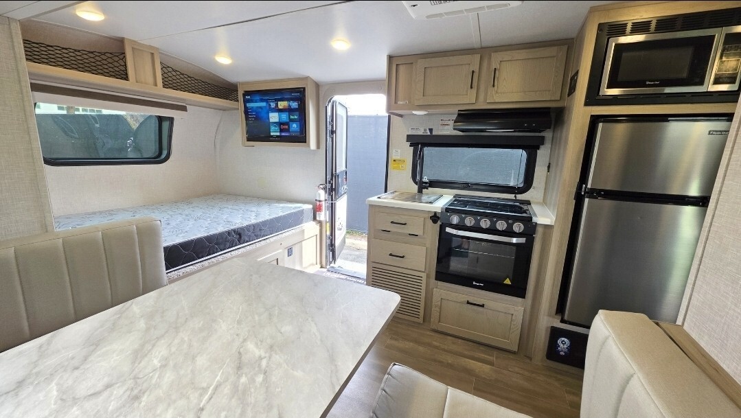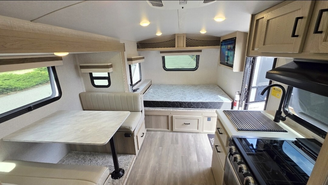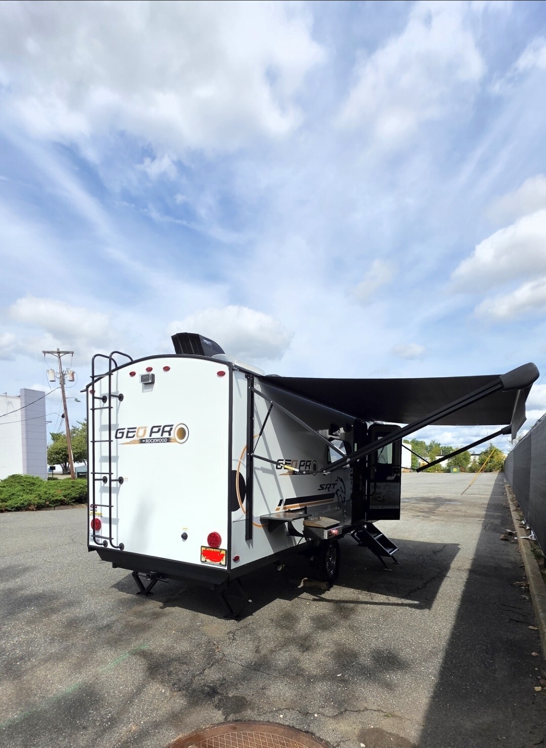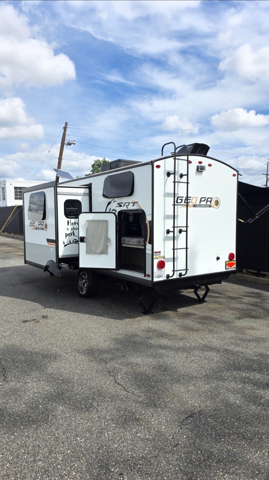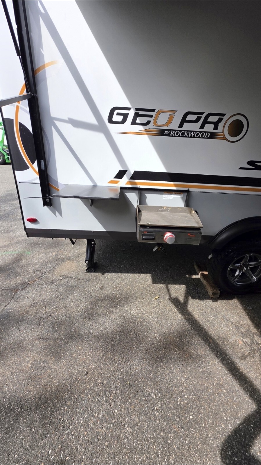 The 2023 Rockwood GEO Pro G20BHS is a popular, lightweight, single-axle travel trailer designed for families, featuring a front full-size bed, a slide-out dinette that converts to a bed, and a rear corner bathroom with bunk beds. Key amenities include an outdoor griddle NEW, a power awning, a 12-volt refrigerator, A/C Heat, TV, Bluetooth stereo Interior snd Exterior, 200W solar panel with controller, Power Inverter 12V to 110V, Its compact, yet well-executed, floor plan and features like torsion axles and Azdel composite construction make it a durable and easy-to-tow option for outdoor adventures. In excellent condition, five trips in the last two years, traveled 1300 miles ONLY. Rebuilt Title. First owner.
