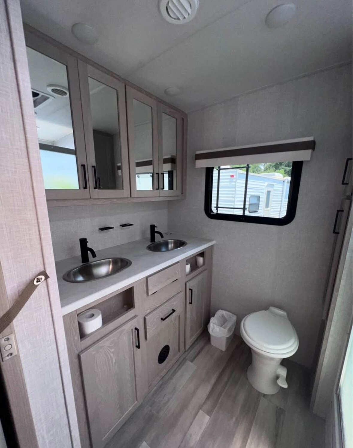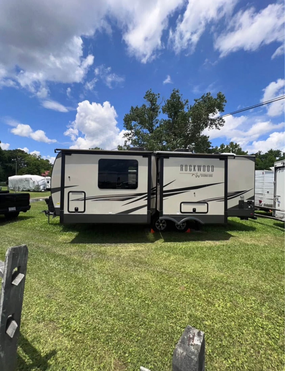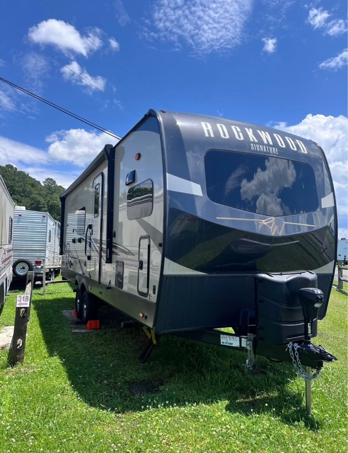 The Forest River Rockwood Signature Travel Trailer 2022 is a 29-foot towable RV with a sleeping capacity for 2 people. This model, the Rockwood 8263MBR, features 2 air conditioners, 2 slide-outs, and 1 awning. It comes with automatic leveling jacks included and a clean vehicle title. Perfect for camping trips or weekend getaways, this travel trailer offers comfort and convenience on the road.