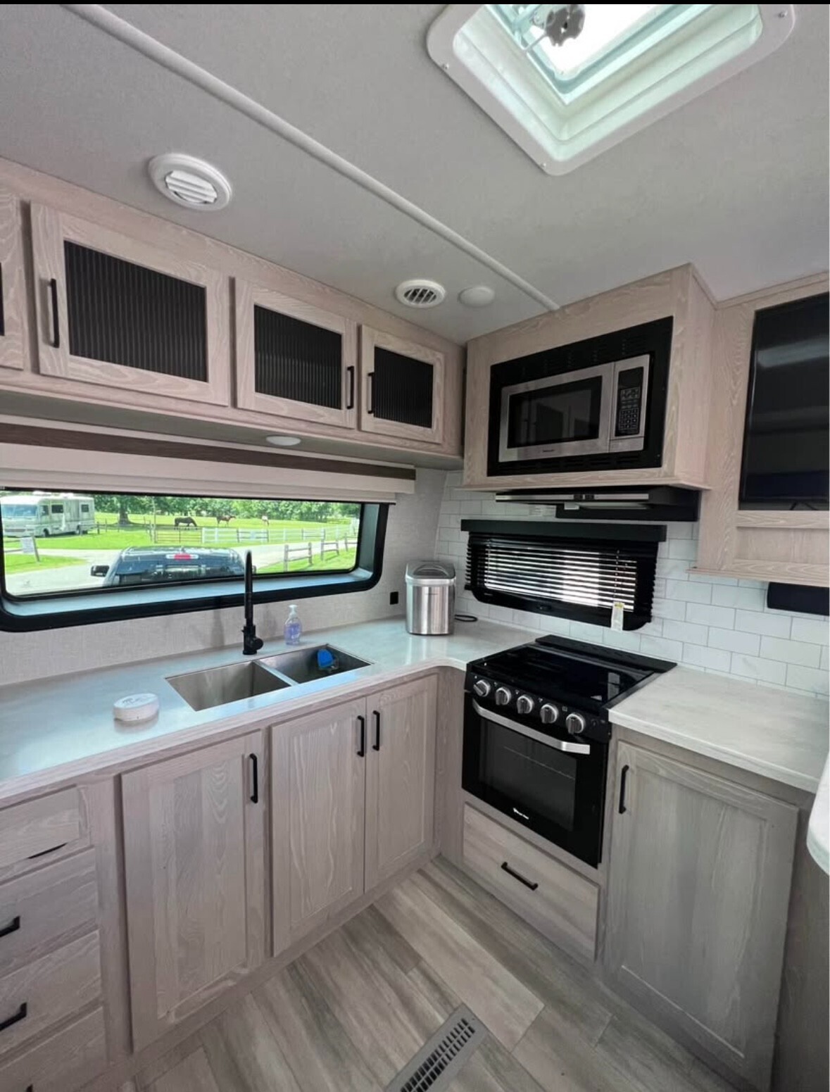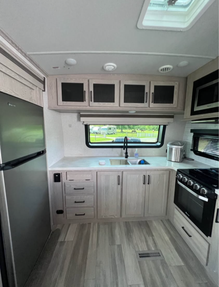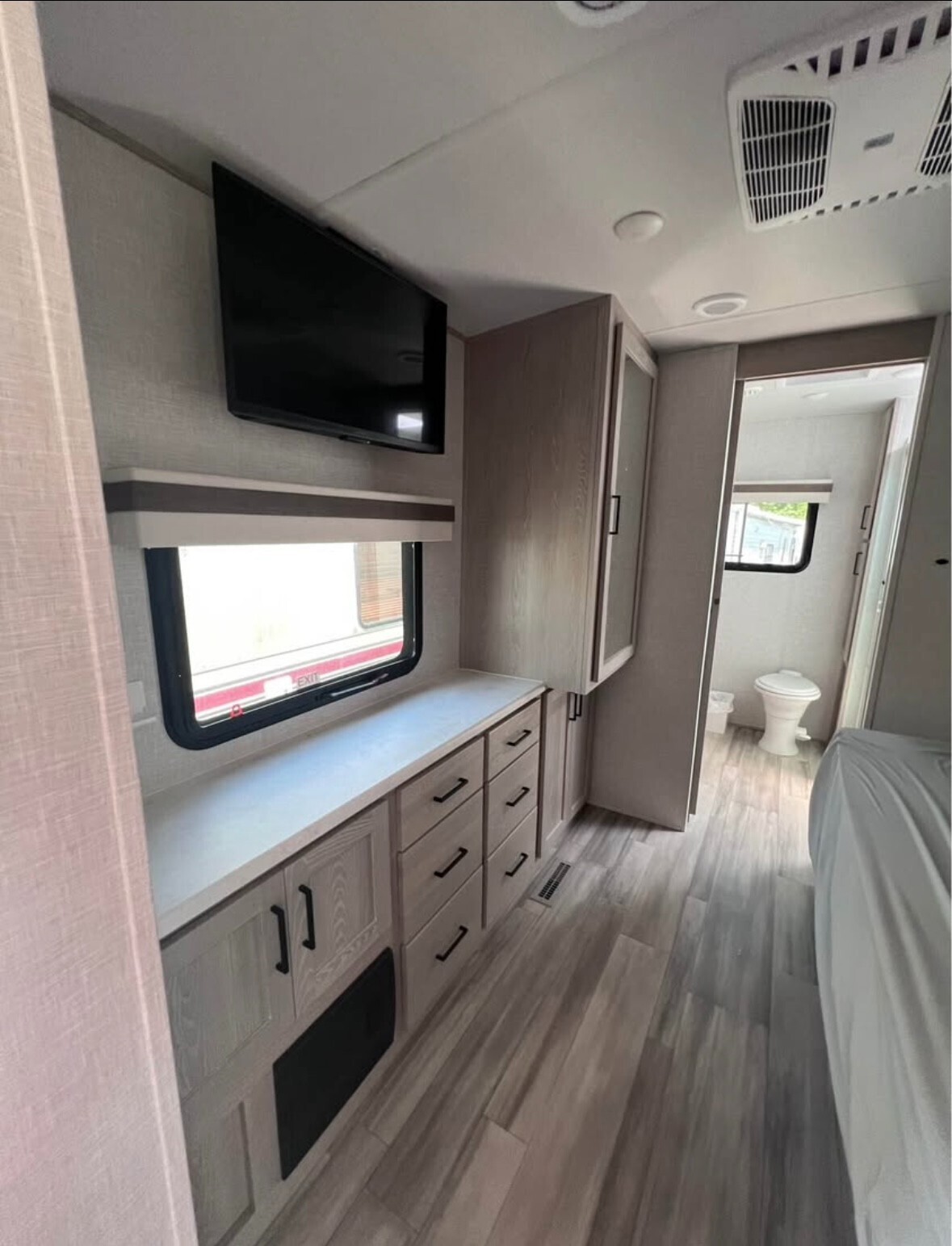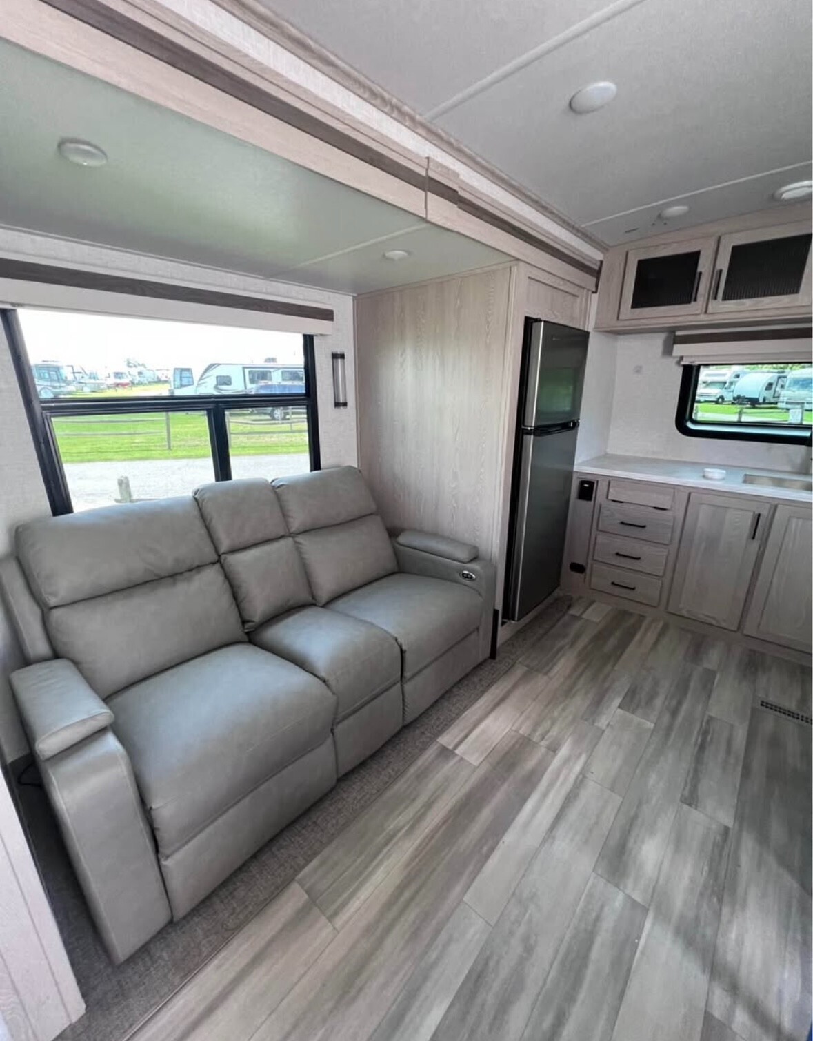 The Forest River Rockwood Signature Travel Trailer 2022 is a 29-foot towable RV with a sleeping capacity for 2 people. This model, the Rockwood 8263MBR, features 2 air conditioners, 2 slide-outs, and 1 awning. It comes with automatic leveling jacks included and a clean vehicle title. Perfect for camping trips or weekend getaways, this travel trailer offers comfort and convenience on the road.