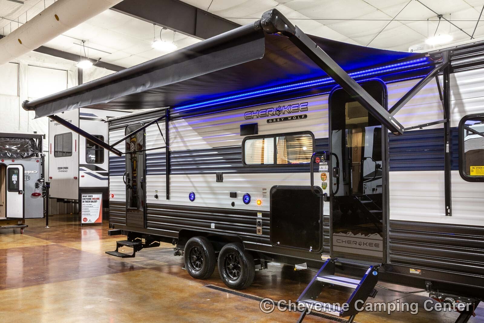 Compare the Cherokee Grey Wolf 26DBH to the Campsite Reserve 26CJ, and you’ll quickly see the difference. If you’re looking for a well-equipped bunkhouse travel trailer to accommodate the whole family, the Cherokee Grey Wolf 26DBH for sale at Cheyenne Camping Center is the perfect choice!