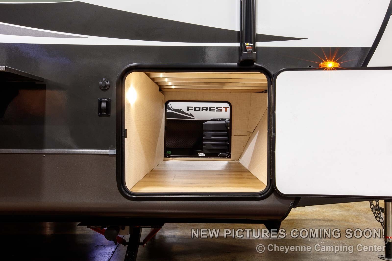 - 15’ Power Awning w/ Adjustable Rain Dump & LED Lighting
