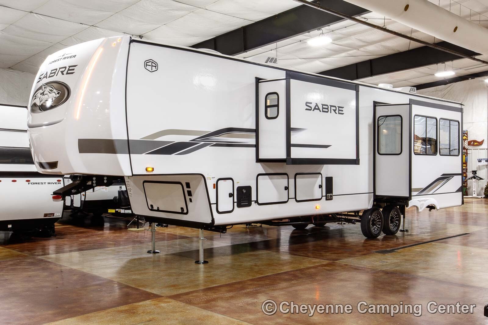 The 2026 Forest River Sabre 36EST rear kitchen fifth wheel for sale at Cheyenne Camping Center combines affordability, premium construction, residential-style comfort, and high-end features to deliver one of the most impressive fifth wheels available today. Whether you’re hitting the open road or setting up for an extended stay, the Sabre 36EST lets you do it all in comfort and style.