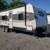 In terms of condition, everything works as it should—plumbing with no leaks, smooth slide-out, sound awning, great flooring, a clean, comfortable bed, and no roofing issues throughout. The interior remains smoke-free and well-preserved, with only light peeling on the faux leather couch—a minor mark of daily use that doesn’t detract from its overall appeal. This unit is clean, dependable, and adventure-ready—perfect for families or couples seeking a getaway-ready RV with both modern amenities and practical specs.