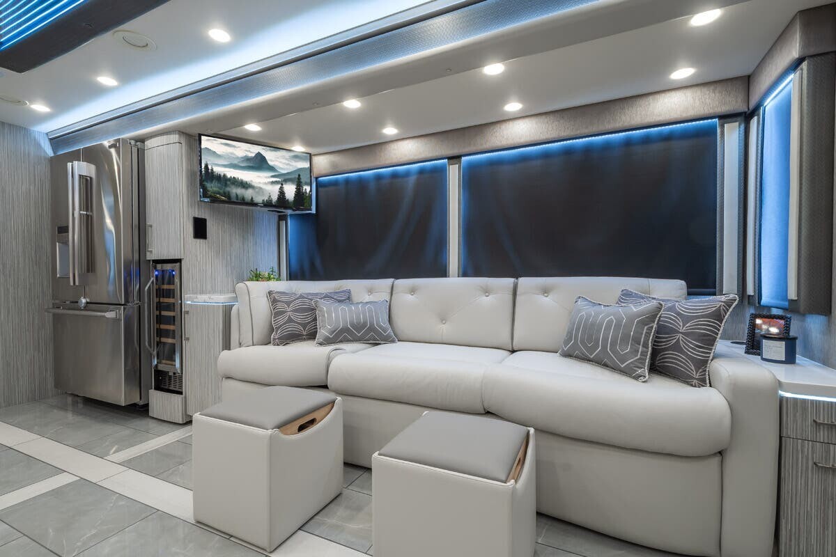The 2025 Foretravel Presidential Series Realm FS605 LVMS is a luxury motorhome designed to provide a comfortable and enjoyable travel experience. Built on the Spartan K4 chassis, it features a Cummins X15 605 HP engine and an Allison 6-speed transmission, ensuring reliable performance on the road.