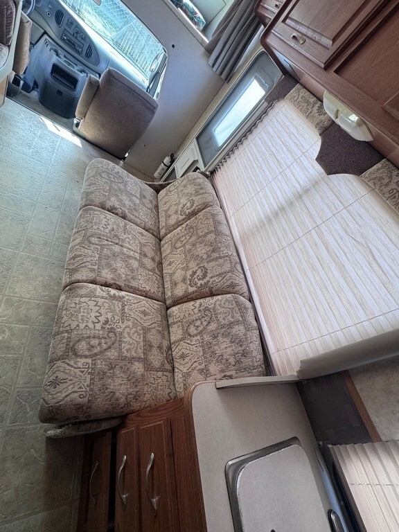 The motorhome has one good awning, solid floors and walls, and an uncracked windshield. Tires are reported to be in good condition. Keys are included.