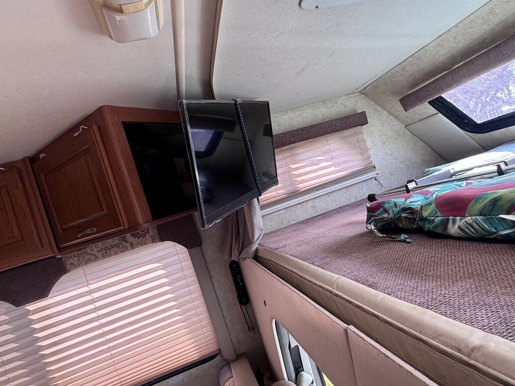 2003 Thor Four Winds Fun Mover 31C 32' Toy Hauler Class C Motorhome Ford E-450 Super Duty 6.8L V10 SMPI Gasoline Only 52K Miles Starts & Runs Location: Stockton, CA 95206 Description: 2003 Thor Four Winds Fun Mover 31C trim 32' Class C toy hauler motorhome built on a Ford E-450 Super Duty chassis. The odometer shows 52,747 miles (only 52K miles). Per inspector, the RV starts and runs (see video). Transmission is working, oil condition is good, brakes are good, and parking lights operate properly. The generator also works. The motorhome ha