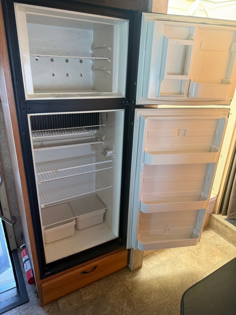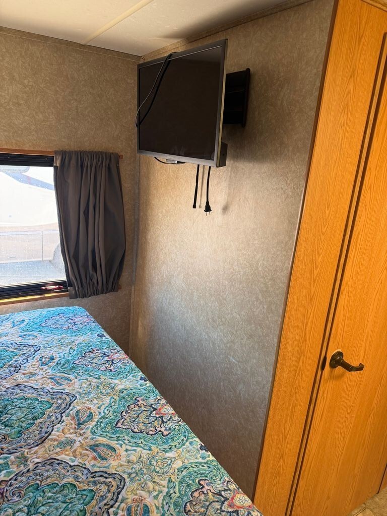 Inside, the coach offers a welcoming and functional layout with comfortable sleeping and living spaces, ideal for weekend getaways or extended road trips. The living area features two TVs for entertainment on the go, along with a CD/stereo system and cable-ready hookups.