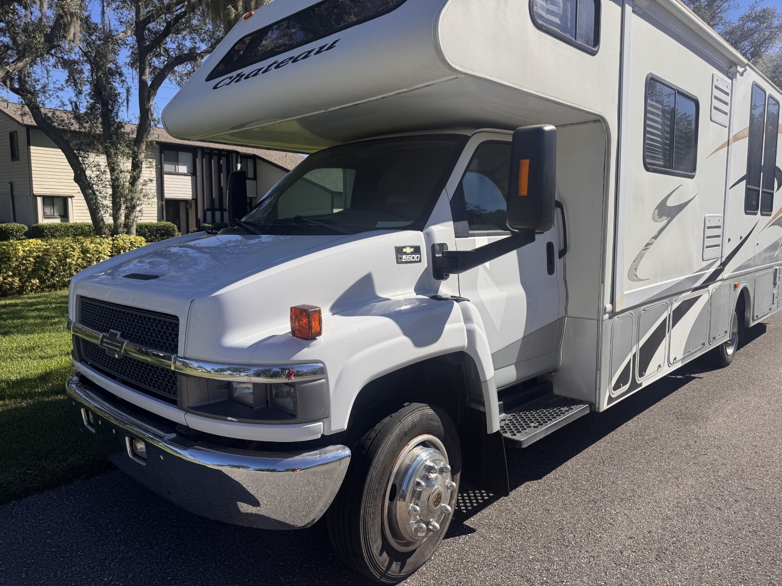 WHAT WORKS as of last use: Generac generator, both A/C units, water pump and tanks, cooktop, oven, both sinks and toilet, shower, living room slide out, propane, all electrical hookups inside and out, and everything related to the Chevy 5500 engine which runs like new. Having said all of that, it's "as-is" and I'm not guaranteeing it all still works since it's been sitting for almost 2 years now. I replaced the battery 10-29-2025 and it started right up, and I have no reason to think anything stopped working while in storage.