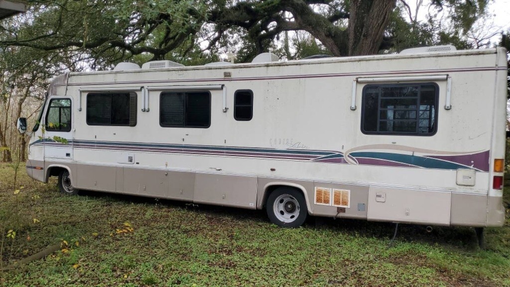 1997 Georgie Boy Cruise Air M-2111 33' A Class RV Moved Recently Good Roof Location: Brazoria TX 77422 1997 Cruise Air Georgie Boy A-Class RV 33' Up for auction is a 1997 Cruise Air Georgie Boy A-Class motorhome, 33 feet in length, with 75,000 miles on the odometer. This RV was driven recently when moved to its current location. It runs on gasoline and features a 50-amp electrical service. Mechanical & Drive: • Starts and drives, but brakes are very weak and should be addressed before regular use. • Las