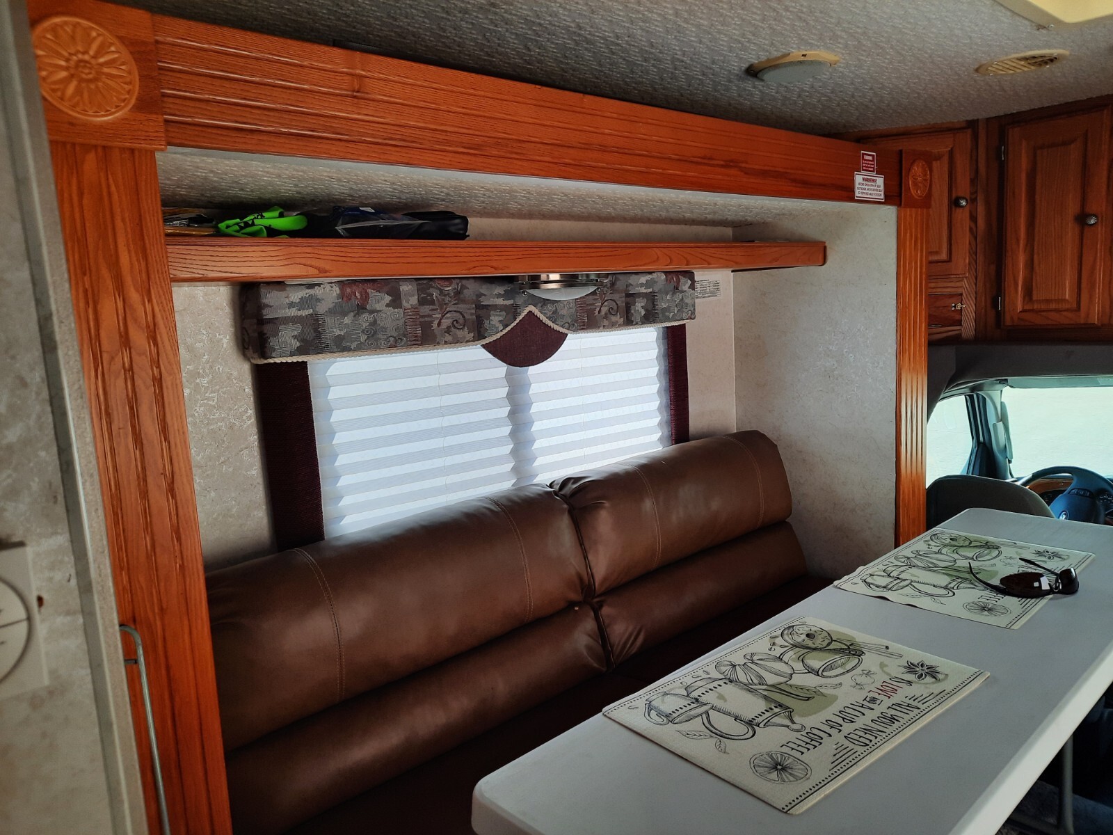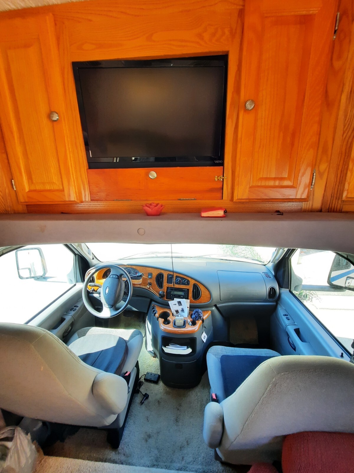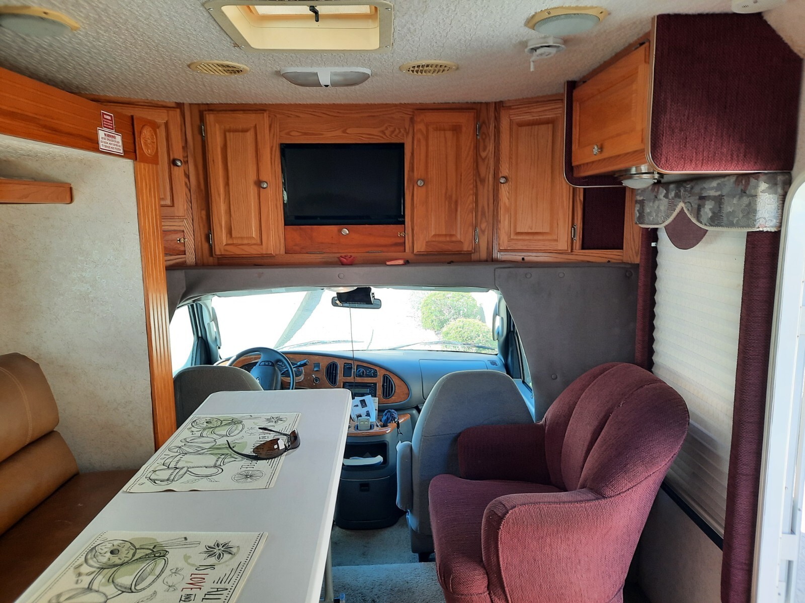 We purchased this unit late 2023 and gave it a thorough going over in preparation for a trip to Alaska in the Spring of 2024. Service performed included:Engine: Changed oil & filter, air filter, fuel filter, coolant, spark plugs and coil packs, replaced fuel injectorsTransmission: Changed oil & filterRear end: Changed oil Brakes: New Pads, Rotors, Calipers, HosesTires: All tires have been replaced within the last 10,000 milesGenset: New starter solenoid, changed oil & filter, serviced air filter, Less than 300 hours on the hour meterHouse Battery: New, with new HD mountingSpare tire: New rim and tire w/ rear mount for easy accessDomestic water pump: replaced October, 2025Awning over slide-out: NewSkylight over shower: NewHouse lights: Halogen bulbs have been replaced with LED’sAll appliances have been found to be in good working order. The master bed is a short queen. A fan has been permanently installed in the bedroom. Previous owners removed the factory seat and dinette table and installed a “jack knife” couch to provide an additional berth. We’ve now installed a removable dinette table at the couch.