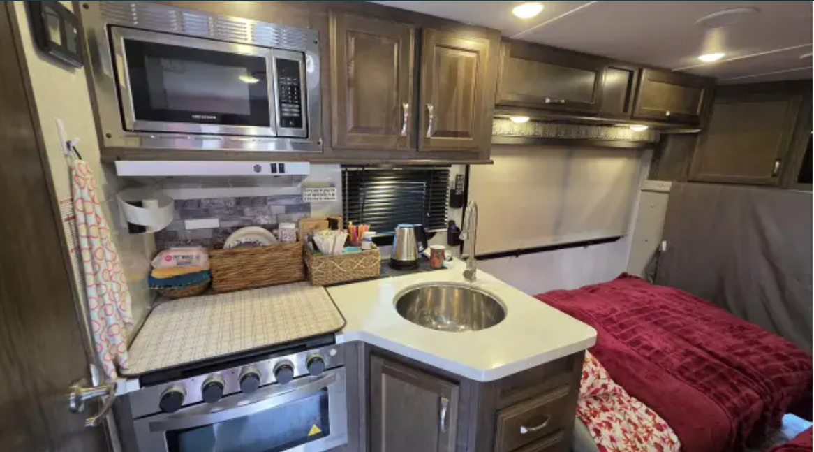 The Godzilla motor with a towing capacity of 10,000lbs you can easily bring along a small car or boat, jetskis, etc. Shorter than a mercedes sprinter van. This RV can park just about anywhere! The biggest difference being it has a real bathroom. No cassette toilets or doors that open up while you're using the potty. And an actual shower tall enough for humans. The ride quality and suspension have already been vastly improved from stock...we've added leaf springs and upraded the shocks. Handling and driveability are much better than original. No more being blown off the road when a semi passes. No accidents, no flooding, and no mechanical issues. Clear title. Never smoked in. Just resealed the roof as part of regular maintenance. Excellent condition. Reason to sell: need a travel trailer. Easy to Drive and Park Rear Bathroom Large Refrigerator Cold A/C Three-Burner Range Tons of Overhead Storage Electric Awning One-Piece Fiberglass Roof Gas Oven Capacity: 55 gal gas, 41 gal fresh water, 26 gray water, 26 black water, 6 gal water heater, 42 lbs LP tank. Currently 24,500 miles Ideal for a couple or solo traveler!