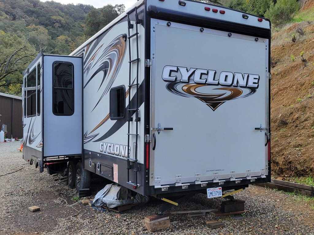 This 2014 Heartland Cyclone 3110 is a spacious, wide-body luxury toy hauler with a 10 garage, three slide-outs, huge tanks, upgraded suspension, and heavy-duty build qualityideal for families, full-timers, adventurers, and off-grid camping. Original owner, extremely well maintained, no leaks, no smoking, and loaded with upgrades.