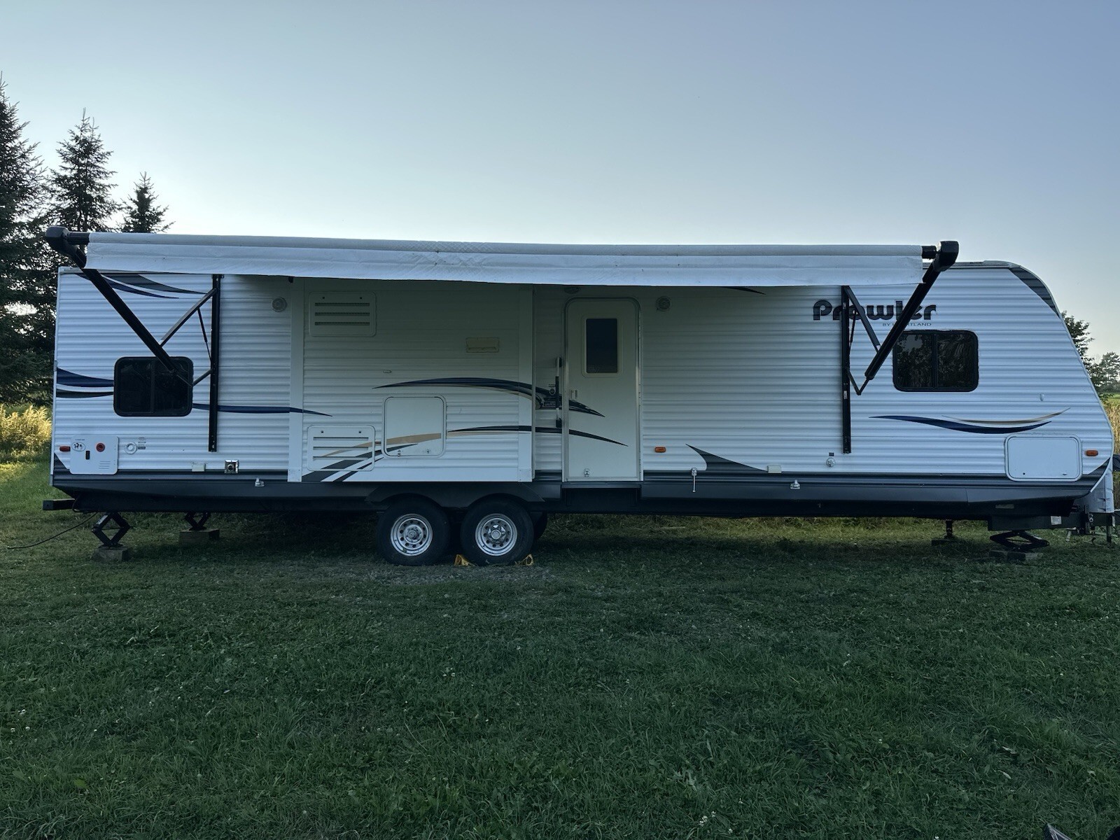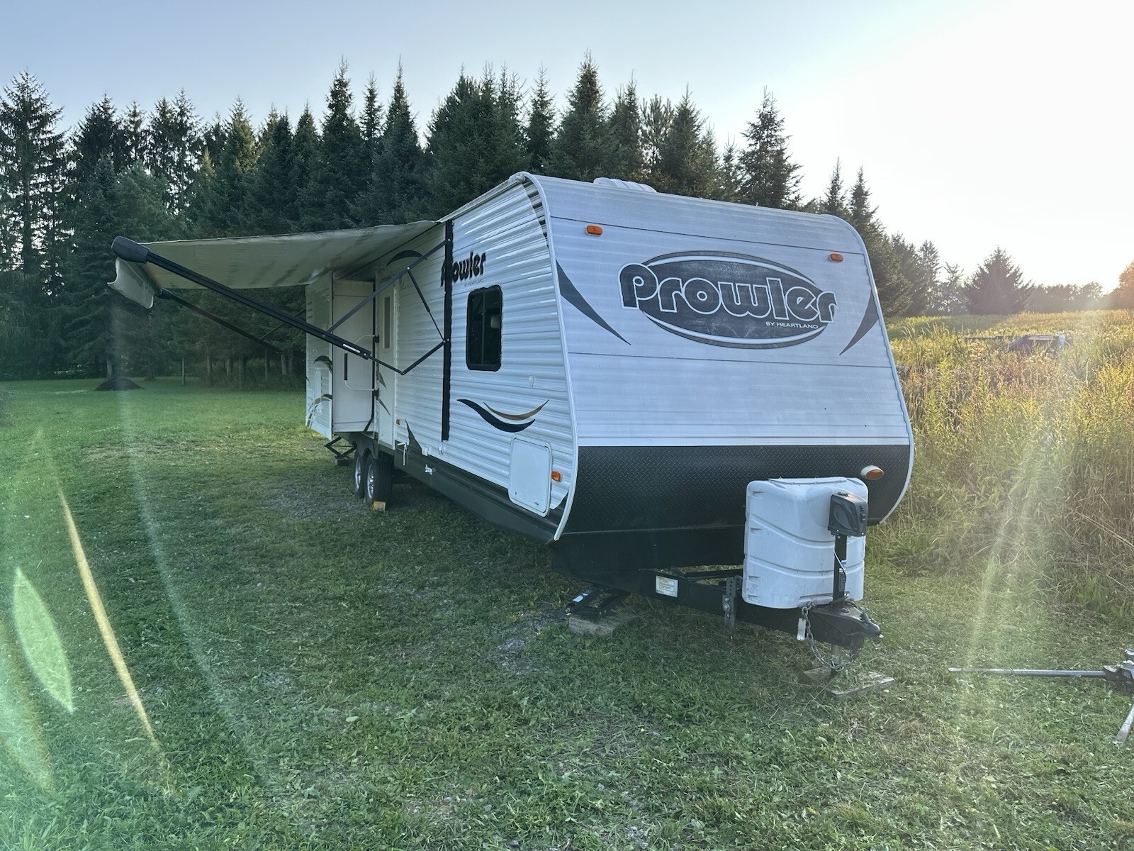 2014 Prowler 33P BHS. 33 feet long, 11,000lbsAmenities:- Full kitchen with island (microwave, oven, fridge)- Sleeps 10 - 3 slide outs, 4 bunks, master bedroom, fold out loveseat- Full bath with shower. - Outdoor wash station. 2 tvs, dvd, stereo, outdoor/indoor speakers.- Tons of under and cabinet storage- Bunk room slide out folds up and converts into booth seating with table.Improvements:Tankless Water Heater 2025New Pump 2025Sealed roof 2023Tires 2022 (~2500 miles)Electric AwningElectric JackIncludes:Husky TS Center Line Sway Bar35’ of waste water line kit35 gallon honey wagon20+ 6x6 Blocking20+ plastic levelers / blockingWheel chocks5 memory foam toppers.Disclosure:- Wall with previous leak- Replaced slide out floor- Seal on under trailer compartment sealed, but wood on drivers side is soft. Passengers side replaced. NOTE: All leaks have been repairedhttps://www.rvguide.com/specs/heartland/travel-trailer/2014/prowler/33p-bhs.html