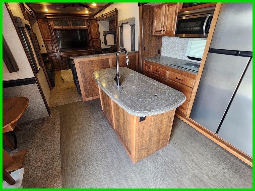 This 2016 Heartland Big Country BC 4010RD Fifth Wheel is a spacious and well-appointed luxury RV designed for extended stays or full-time living. Featuring a wide-open rear den floorplan, it offers multiple slide-outs that create an expansive living space with residential-style comfort. Highlights include plush seating, an entertainment center with fireplace, a well-equipped kitchen with ample storage, and a private master suite for restful nights. Built with Heartland’s attention to quality and detail, this Big Country delivers durability, convenience, and comfort, making it an excellent choice for those seeking a dependable fifth wheel with a residential feel.