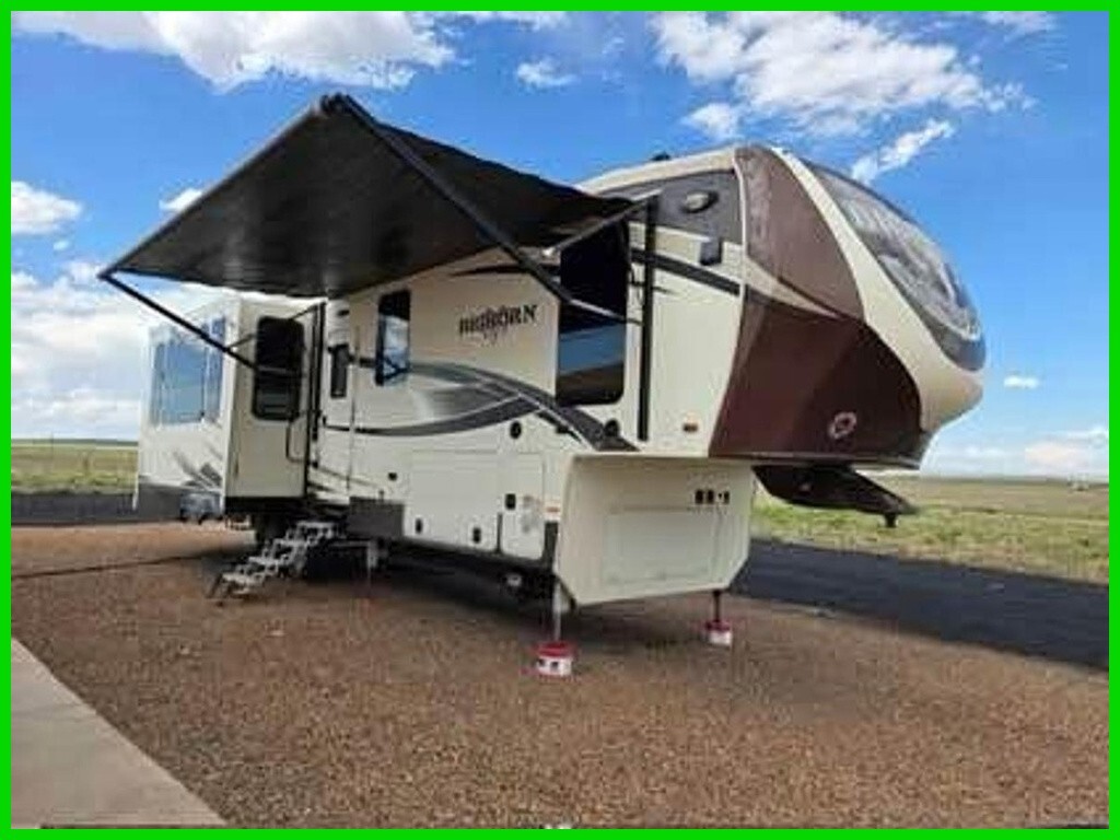This spacious 2016 Heartland Bighorn 3575EL fifth wheel combines comfort, convenience, and livability, making it ideal for full-time RVing, oilfield housing, or long-term travel. It features three large slide-outs that expand the living, kitchen, and bedroom spaces, along with heated and vibrating theater recliners, an aftermarket washer and dryer, a fireplace with flat-screen TV, and a Select Comfort queen mattress that fits a king-size frame. The kitchen is equipped with a gas stove, convection microwave, and full-size refrigerator, while the interior is smoke-free, clean, and well maintained. Additional amenities include dual A/C units, a full-size shower, auto-leveling system, heated underbelly with R-11/R-34/R-38 insulation, large pass-through storage, and brand new 14-ply tires.