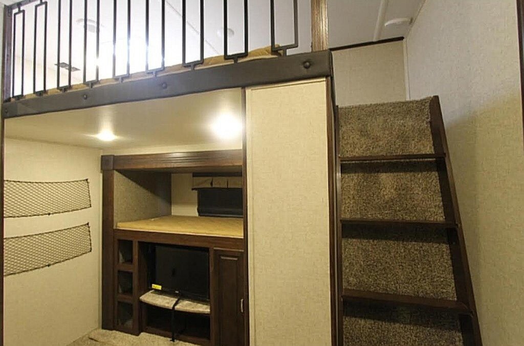 This Heartland has an overall length of 38 feet and comes equipped with 5 power-retractable slide-outs, 2 A/C units, 1½ baths, a bunkhouse, an outdoor kitchen, and room to sleep up to 11. This unit has been well-maintained.