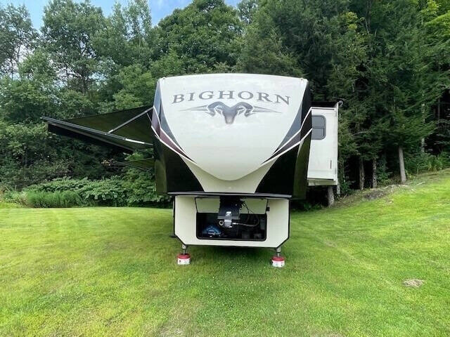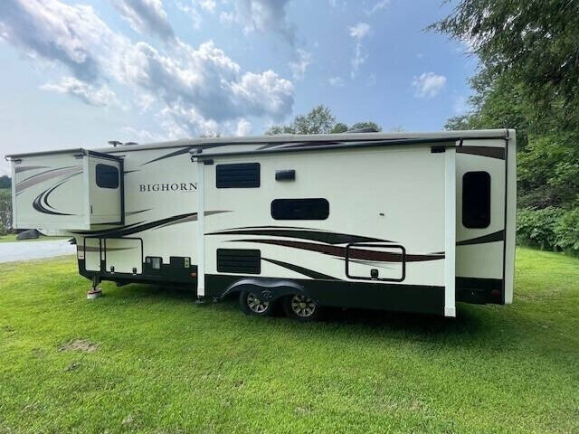 2018 Heartland Bighorn BH3270RS Fifth Wheel For Sale in Berlin, VT 05602 This Heartland has an overall length of 35.2 feet and comes equipped with 3 power retractable slide-outs, 1 power retractable awning, A/C, and plenty of room to sleep 4. This unit has been well-maintained. Kitchen/Living Area Features 3-Burner Stove/Oven Overhead Fan Microwave Full-Size Fridge/Freezer Sink & Faucet on Island Table & Chairs Pantry/Storage Space TV Sleeper Sofa Two Recliners Desk Ar