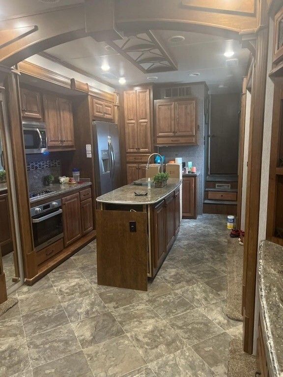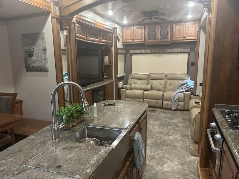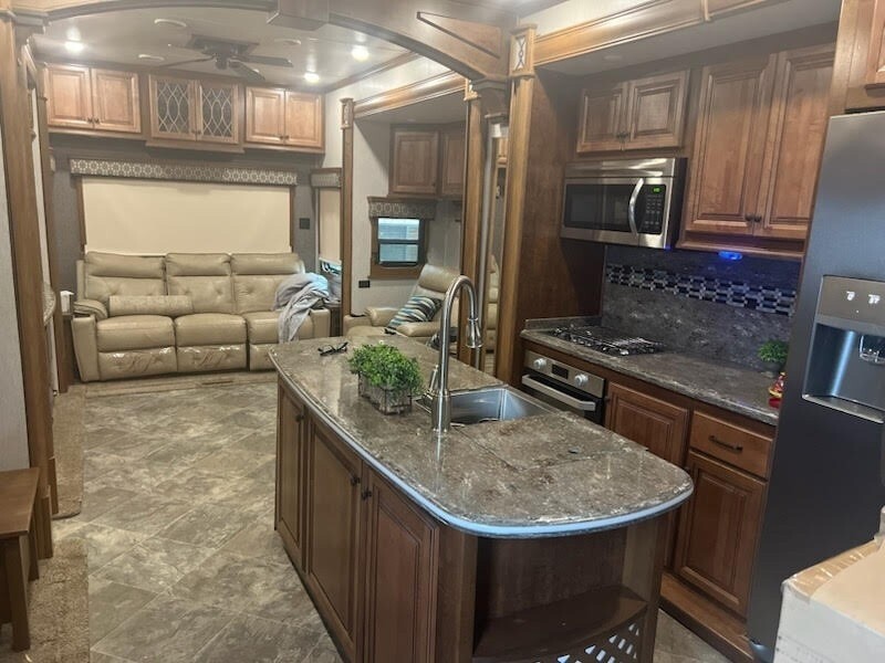 2018 Heartland Landmark 365 LM Charleston For Sale in San Leon, TX 77539 This Heartland Landmark has an overall length of 41.4 feet and comes equipped with 5 power retractable slide-outs, 1 power retractable awning, 3 A/C units, a generator/solar panels, and plenty of room to sleep 8. This unit has been well-maintained. Kitchen Features 3-Burner Stove/Oven Overhead Fan Microwave Full-Size Fridge/Freezer Sink & Faucet Pantry Storage Space Kitchen Island