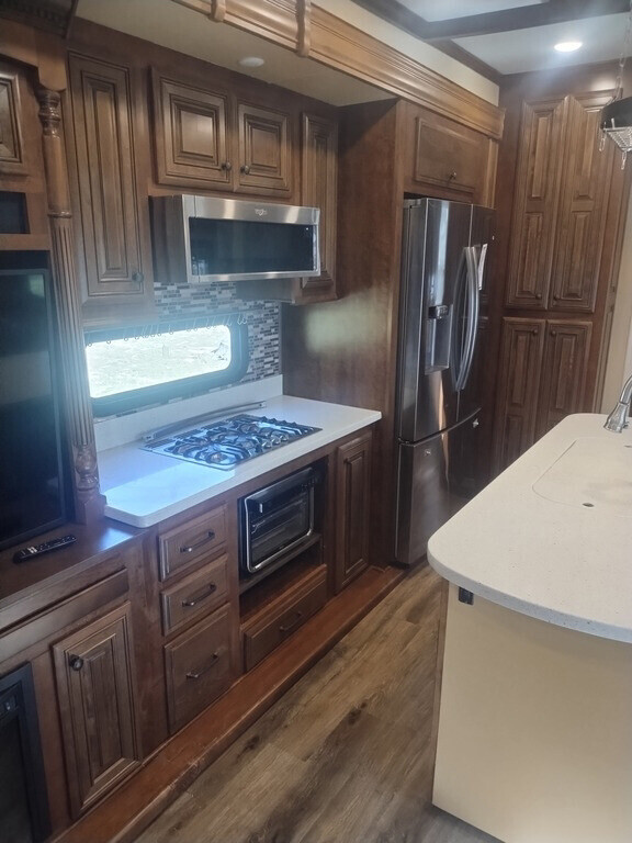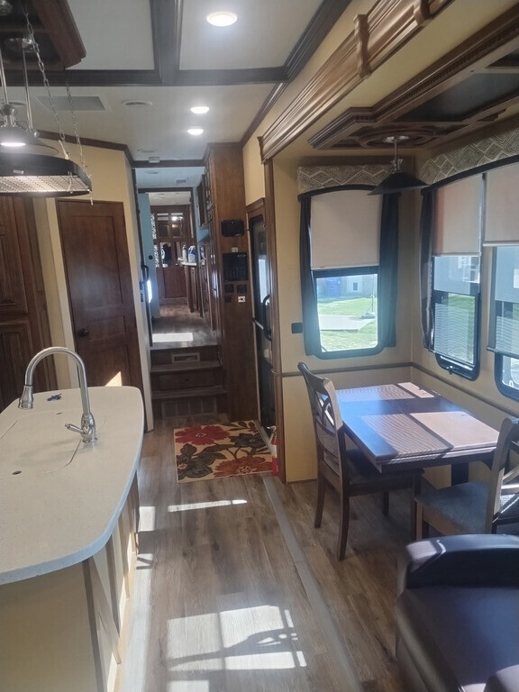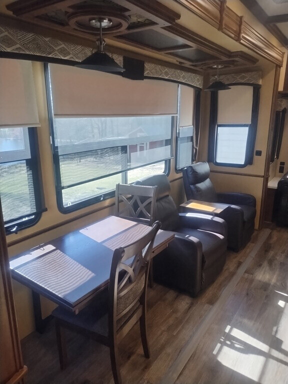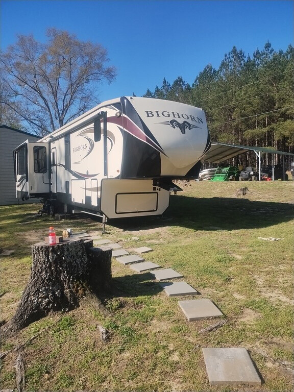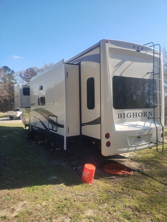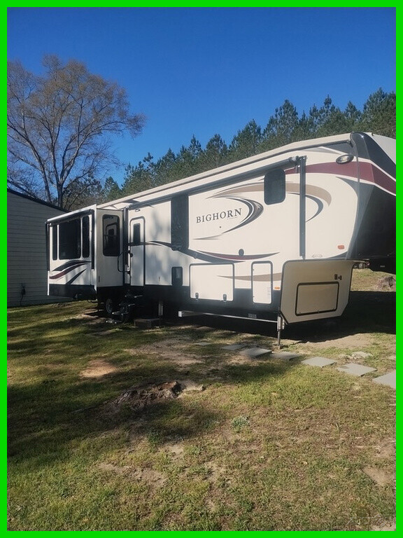 2019 Heartland Bighorn 3870FB Fifth Wheel For Sale in Salem, AL 36874 This Heartland Bighorn has an overall length of 42.1 feet and comes equipped with 3 power retractable slide-outs, 1 power retractable awning & 1 manual awning, 2 A/C units, 1½ baths,a fireplace, and plenty of room to sleep 4. This unit has been well-maintained. Kitchen/Living Area Features 3-Burner Stovetop Overhead Fan Microwave Air Fryer Residential Fridge/Freezer Sink & Faucet on Island Table & Chairs Pantry/Storage Space