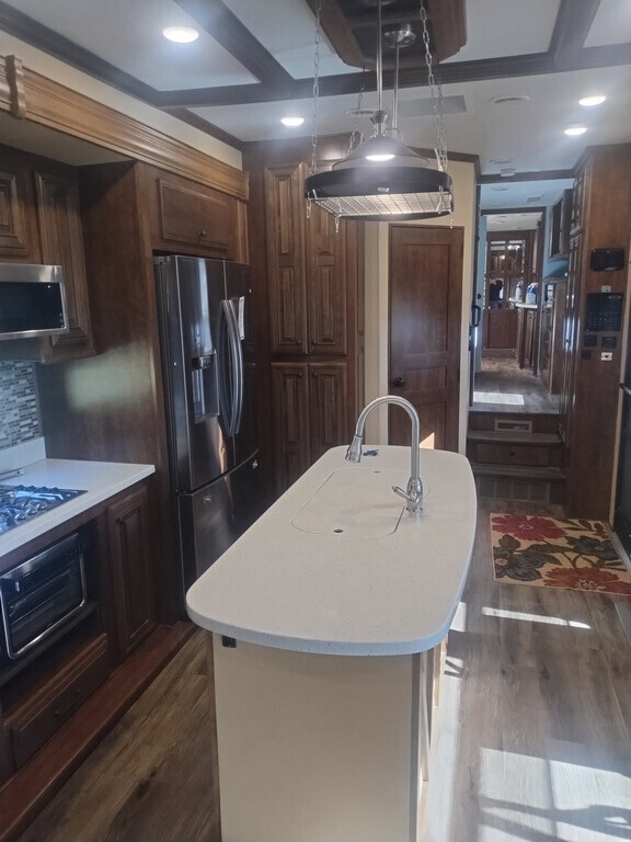 This Heartland Bighorn has an overall length of 42.1 feet and comes equipped with 3 power retractable slide-outs, 1 power retractable awning & 1 manual awning, 2 A/C units, 1½ baths,a fireplace, and plenty of room to sleep 4. This unit has been well-maintained.