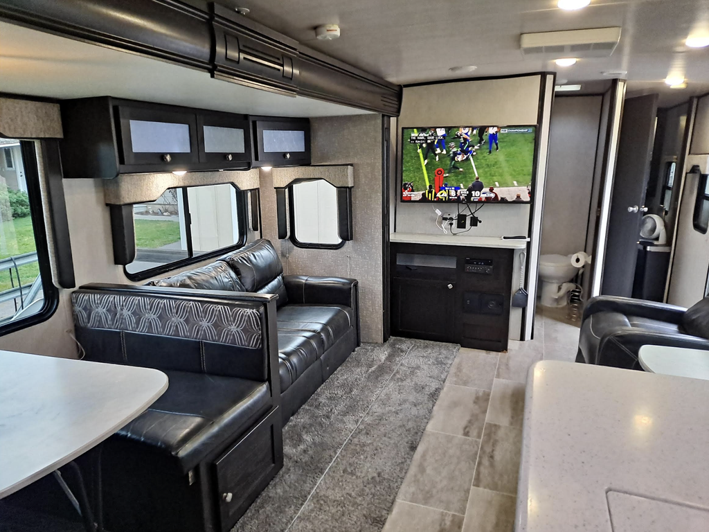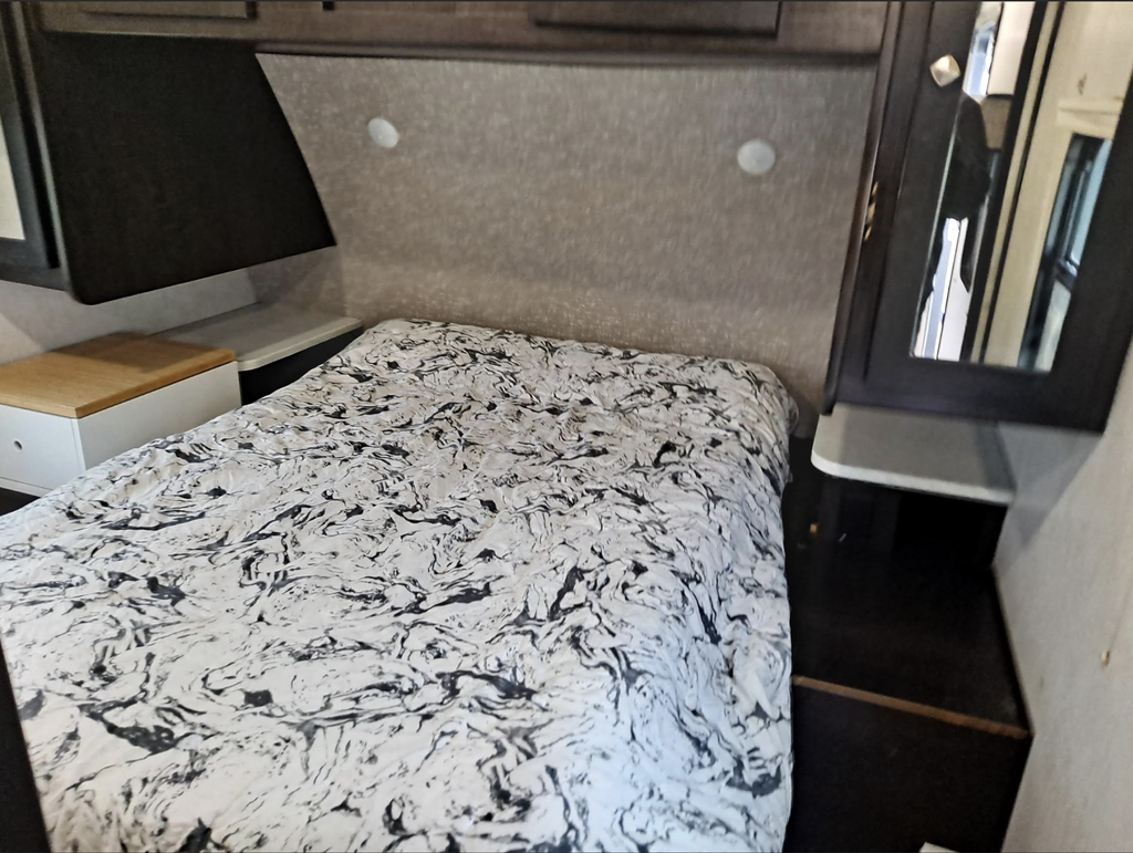 Comfort is assured year-round thanks to a second air conditioning unit, professionally installed to handle hot summer days with ease. The living space remains cool, quiet, and comfortable whether youre parked long-term or traveling cross-country.