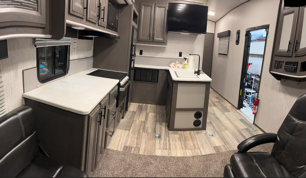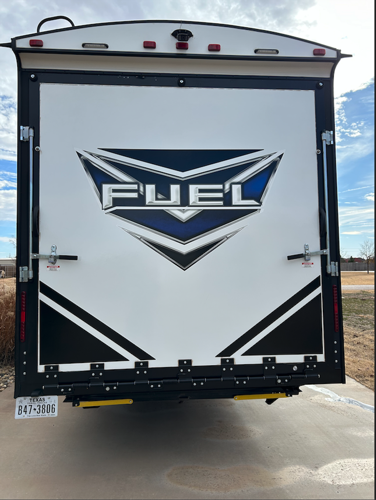 2021 Heartland Fuel 287 36' 9" Toy Hauler Travel Trailer. Slide Out, Awning, Sleeps 8, A/C Unit, Stabilizing System. Massive 16' 3" Garage Sleeps Up to 8 Loaded with Upgrades.