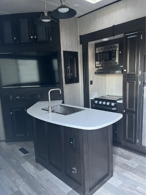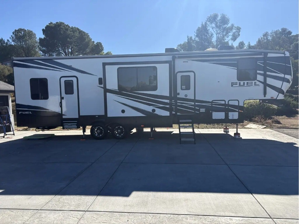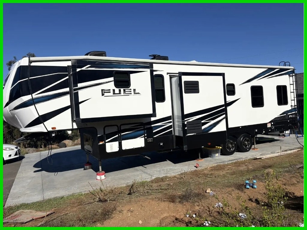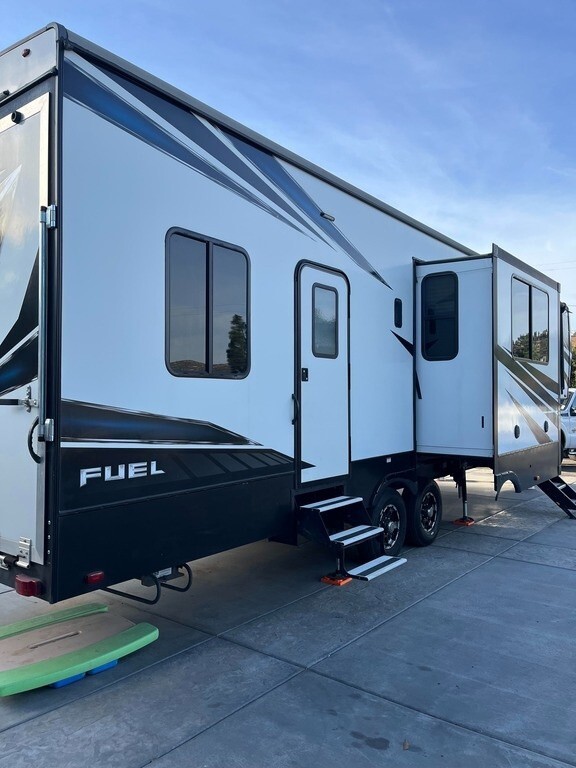 2021 Heartland Fuel 352 Fifth Wheel Toy Hauler For Sale in Alpine, CA 91901 This Heartland has an overall length of 40.17 feet and comes equipped with 3 power-retractable slide-outs, a 12-foot power awning, 2 A/C units, a generator, a 13-foot garage, 1½ baths, and plenty of room to sleep 7. This unit has been well-maintained. Kitchen/Living Area Features 3-Burner Stove/Oven Overhead Fan Microwave Mid-Size Fridge/Freezer Sink & Faucet Pantry/Storage Space TV Reclining Sofa Stereo System