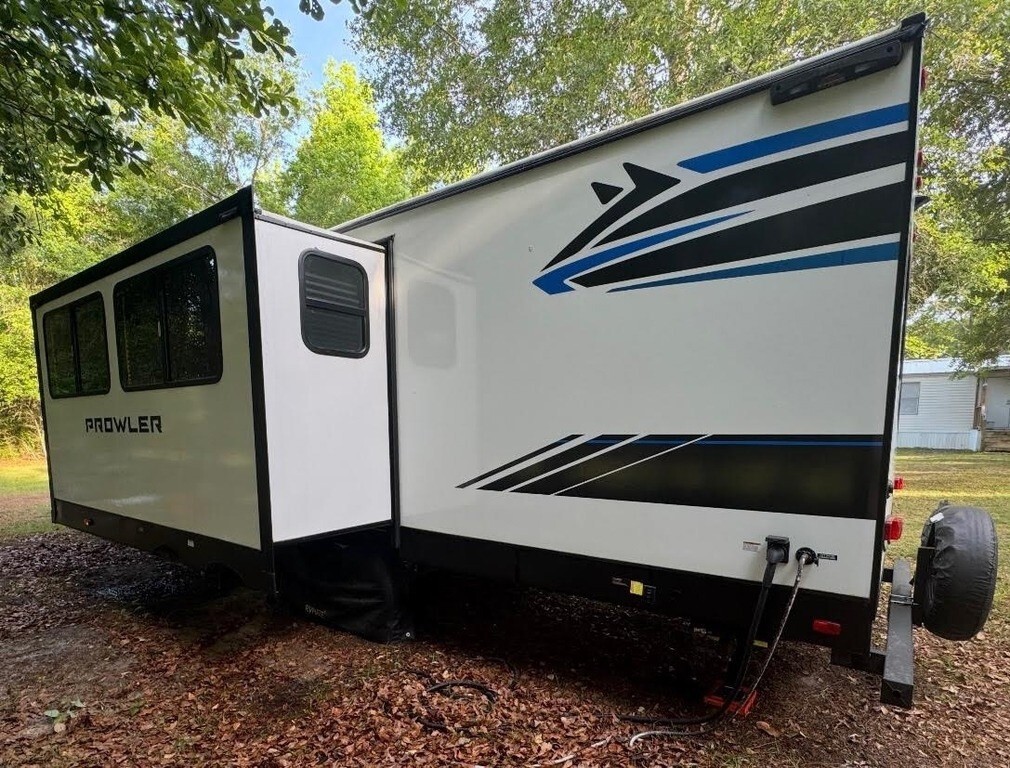 2024 Heartland Prowler 323SBR Travel Trailer For Sale in Macclenny, FL 32063 This Prowler has an overall length of 36.92 feet and comes equipped with 2 power retractable slide-outs, 1 power retractable awning, 1 A/C unit, a bunkroom, and plenty of room to sleep 10. This unit has been well-maintained. Kitchen Features 3-Burner Stove/Oven Overhead Fan Microwave Full-Size Fridge/Freezer Sink & Faucet Pantry Storage Space Living Room Features TV