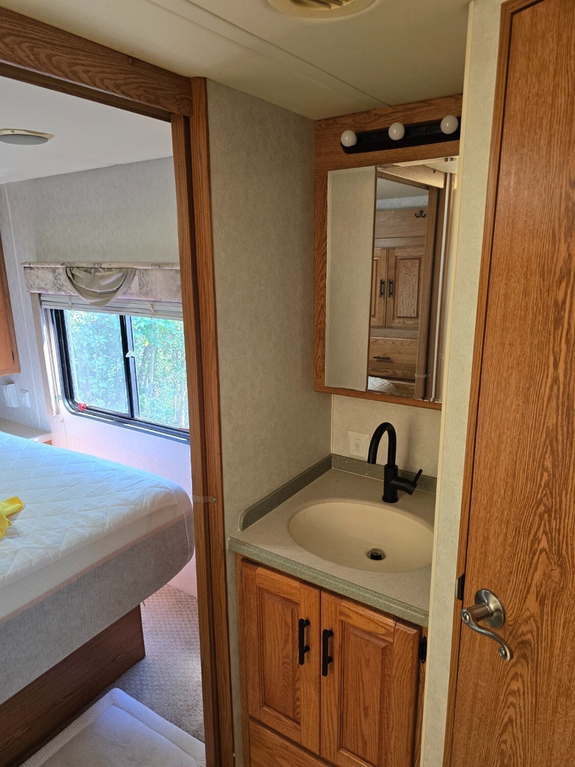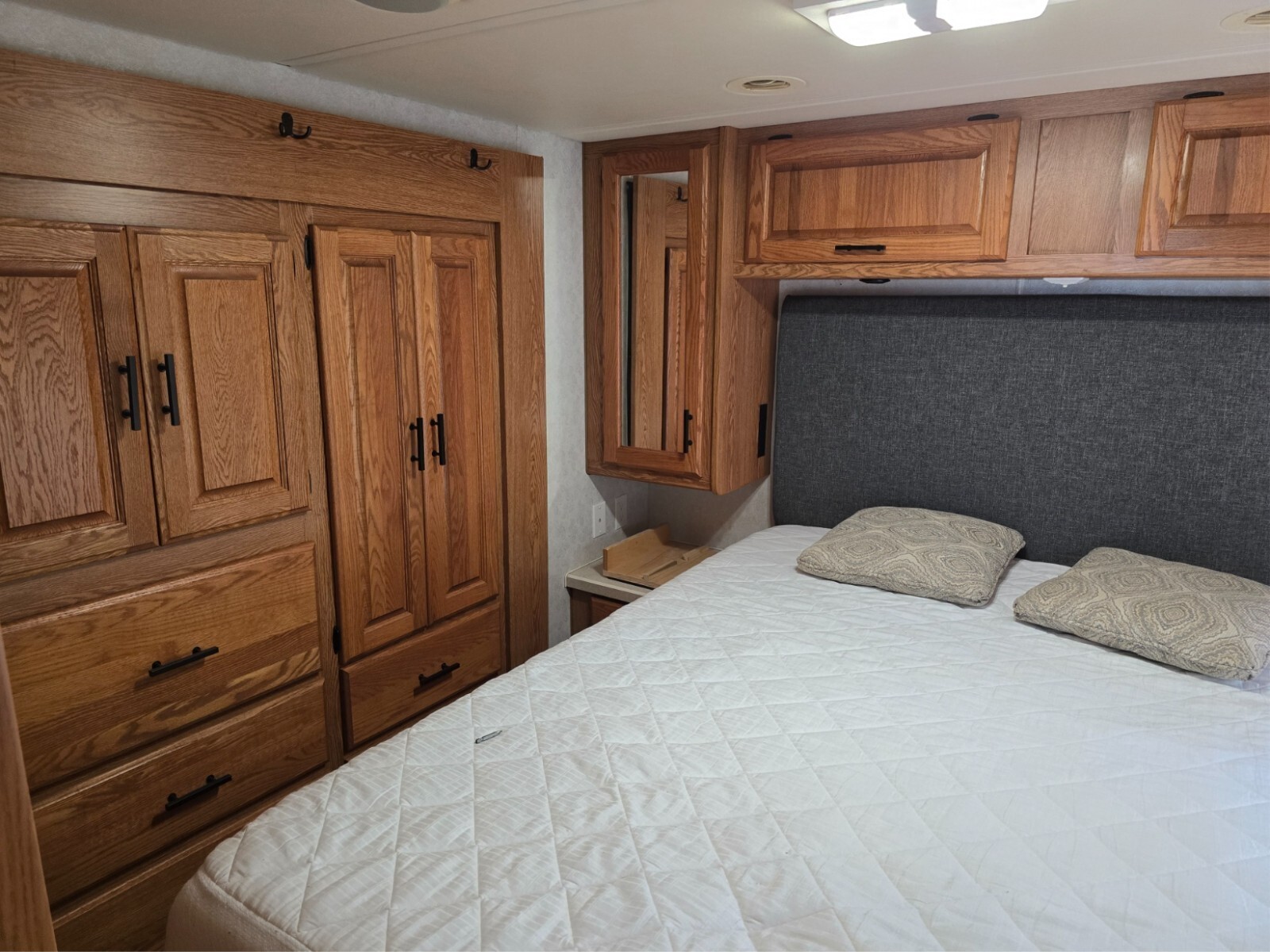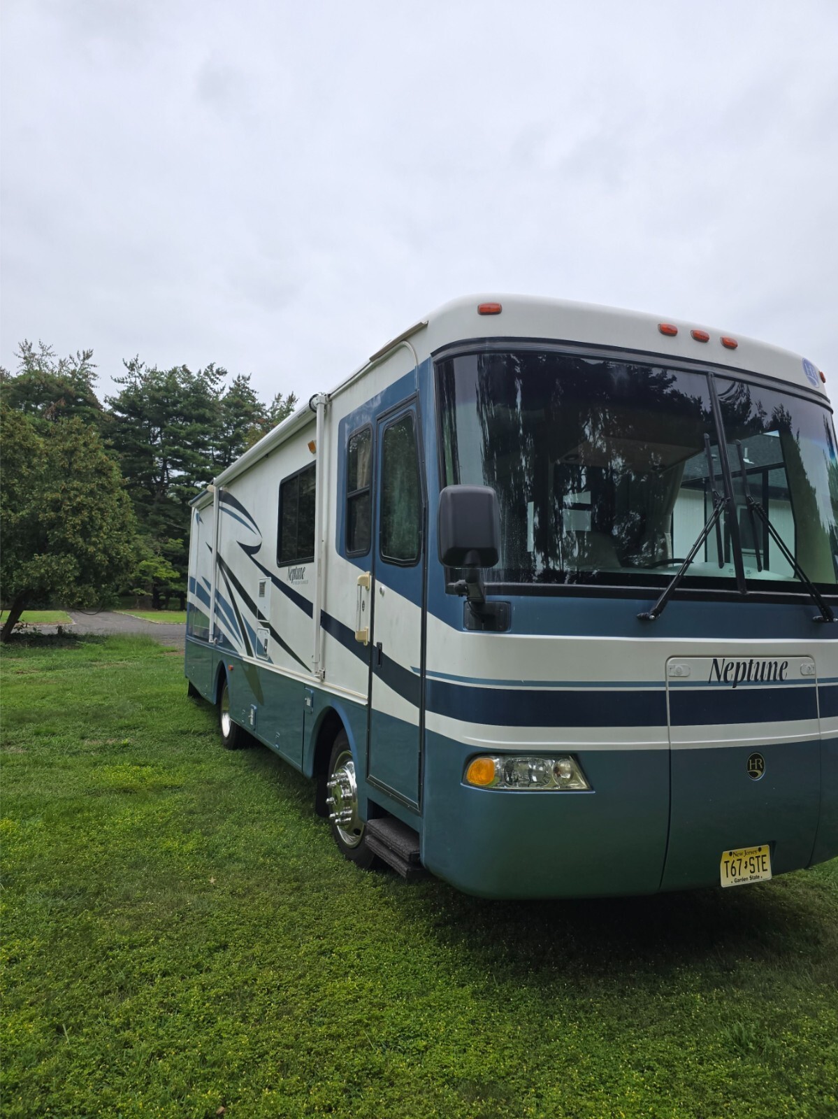 The 2003 Holiday Rumbler Neptun 30 is a Class A Motorhome with a sleeping capacity for 6 people. It has a water capacity of 71-80 gallons and is equipped with 2 air conditioners, 1 awning, and 2 slide outs. This RV is 30 feet long and has a diesel fuel type. It includes 7.5 Kw diesel generato, 600 amp lithium phosphate house battery bank. Two AGM starting batteries with DC to DC charger by Victron. Leveling jacks and was manufactured in the United States. The vehicle title is clean, making it a reliable choice for those looking for a spacious and well-equipped RV for their travels.