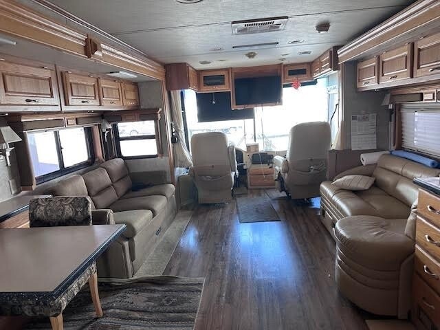 This Endeavor is powered by a Cummins diesel engine and a 6-speed automatic transmission with 47,000 miles. The overall length is 40 feet and comes equipped with 4 slide-outs, 1 awning, 2 A/C units, a generator, and room to sleep up to 6. This unit has been well-maintained.