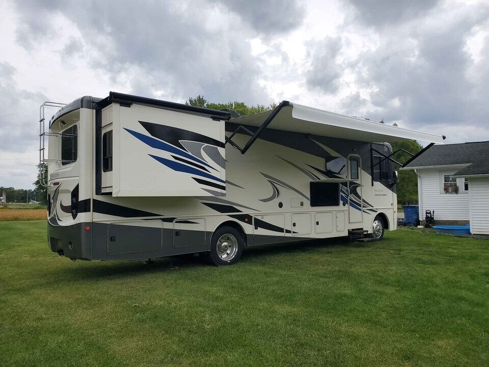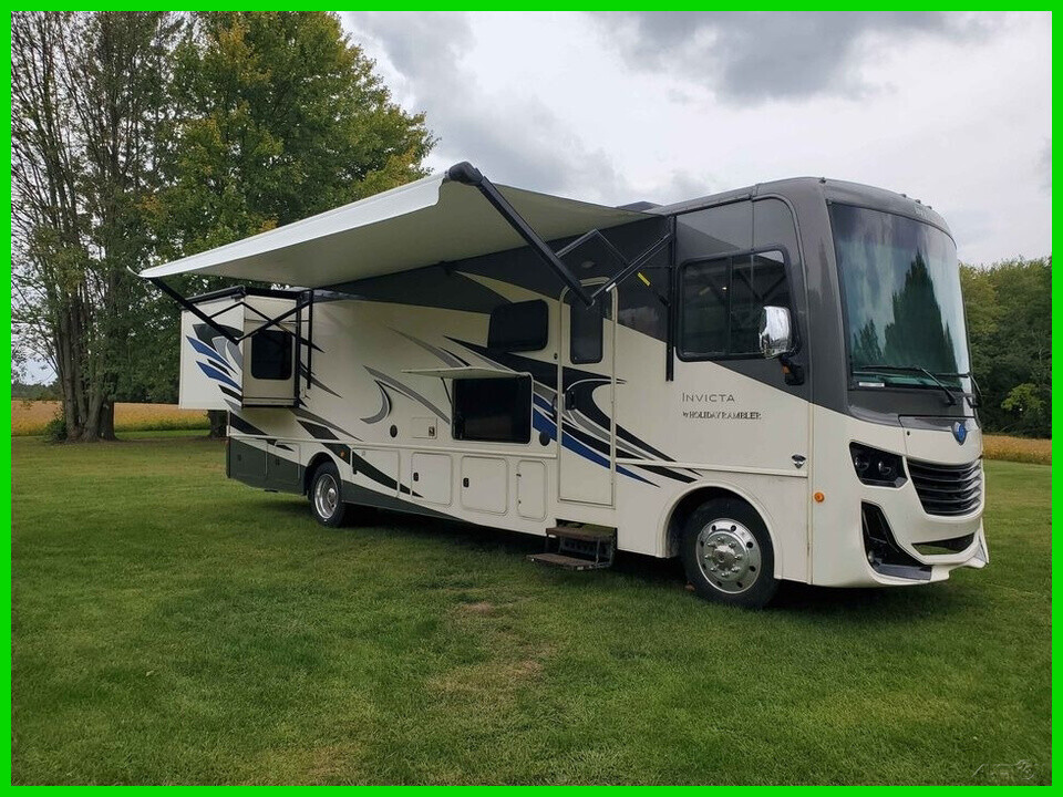 2021 Holiday Rambler Invicta 34MB Class A RV For Sale in Three Rivers, MI 49093 This Holiday Rambler is powered by a 7.3L V8 engine and a 6-speed automatic transmission with 11,500 miles. The overall length is 35.75 feet and it comes equipped with 2 power retractable slide-outs, 1 power retractable awning, 2 A/C units, a generator, an exterior entertainment system, and plenty of room to sleep 6. This unit has been well-maintained. Kitchen/Living Area Features 3-Burner Stove/Oven Overhead Fan Microwave Full-Size Fridge/Freezer Sink & Faucet w/ Cover Booth Dinett